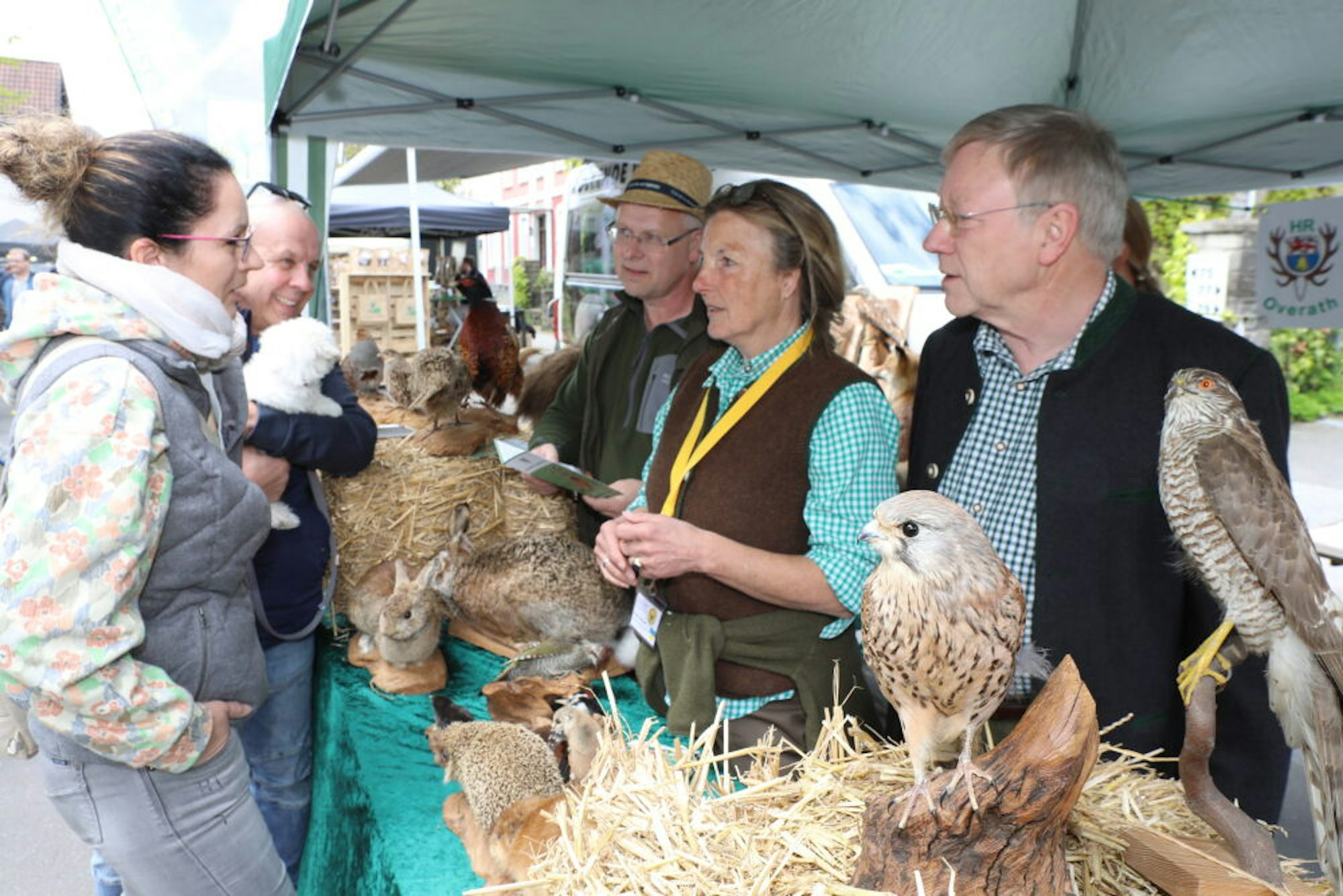 „Der Star ist aber Henry, der Uhu“, sagt Hegeringleiter Andreas Heider und deutet auf den Stand nebenan vom Verein für Greifvogel- und Wildschutz Wermelskirchen – mit lebendigen Tieren.