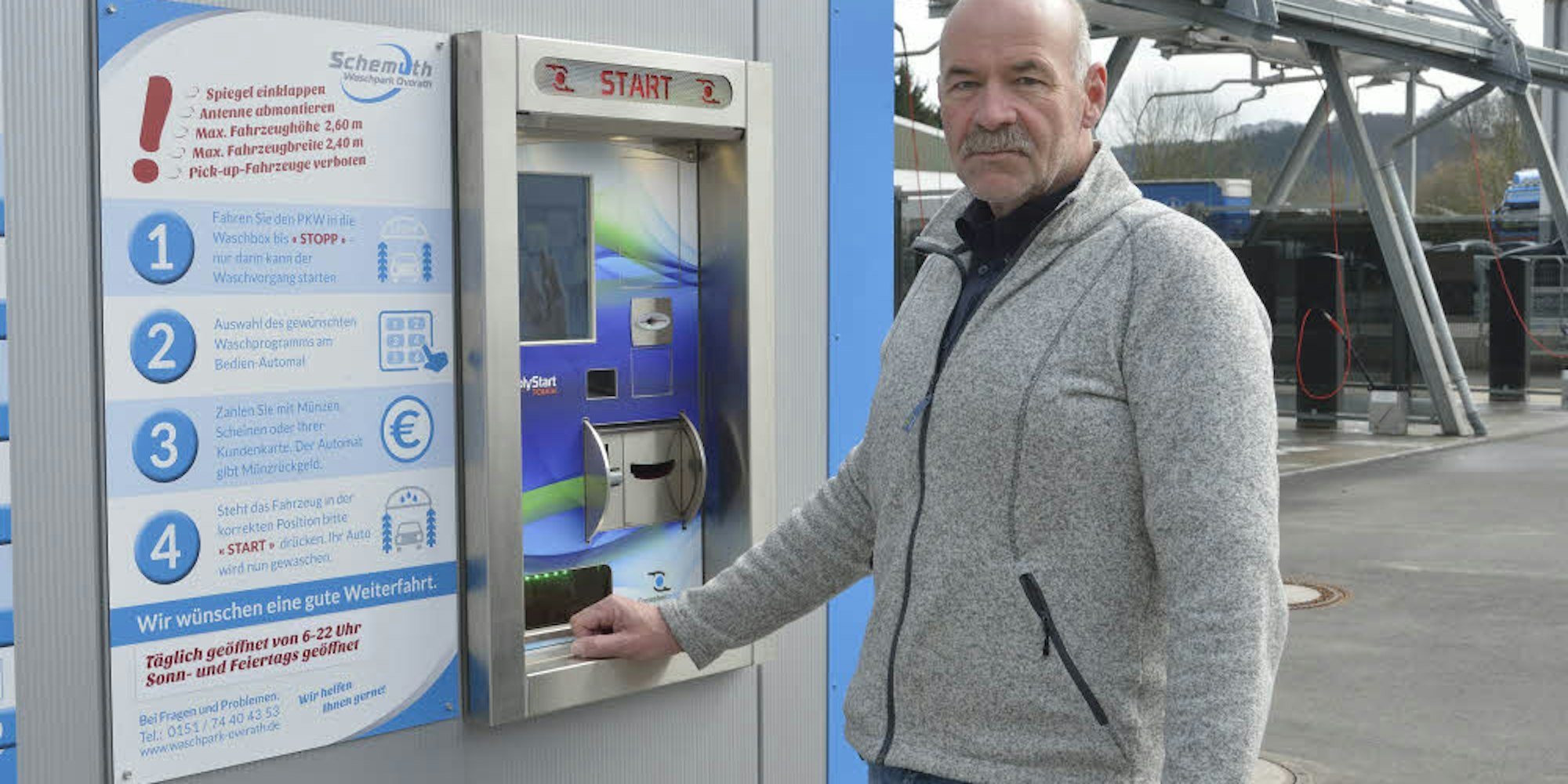 Mit der Genehmigung in der Tasche investierte Schemuth und eröffnete im Dezember 2015 seinen „Waschpark Overath“: Sieben Tage pro Woche Portalwaschanlage, Selbstwasch- und Staubsaugerplätze – zum Missfallen einer Overather Konkurrentin, die nur werktags öffnen durfte.
