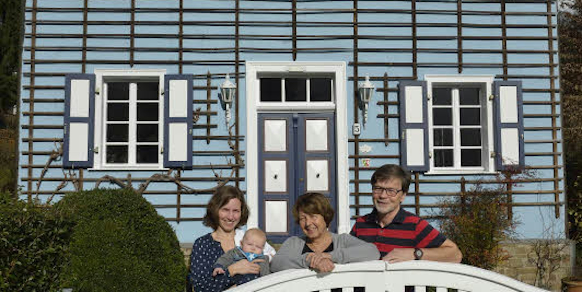 Sie fürchten, dass ihr Haus durch die geplante Wohnanlage erdrückt würde: Die Hausbesitzer Albrecht Schröder-Schröer und Elisabeth Schröer, auf dem Bild mit Tochter Julia und Enkel Moritz.