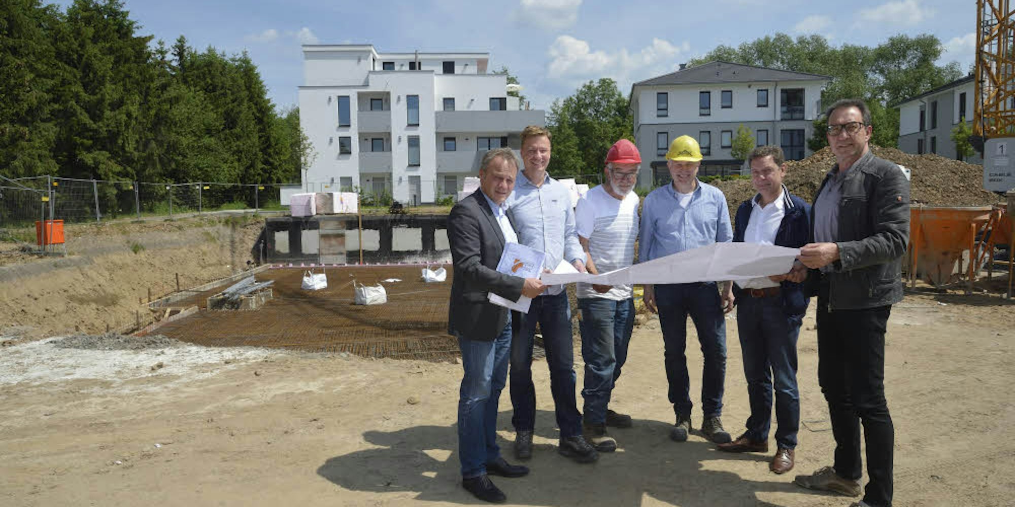 Ganz in der Nähe des Overather Bahnhofs entsteht in diesen Tagen ein neues Wohnangebot für Senioren. Knapp 50 neue Wohnungen entstehen dort, nach Möglichkeit auch eine Tagespflegestation. Kreisweit braucht es viele weitere solcher Projekte. Das Foto zeigt Investor und Stadtverwaltung beim ersten Spatenstich im Mai.