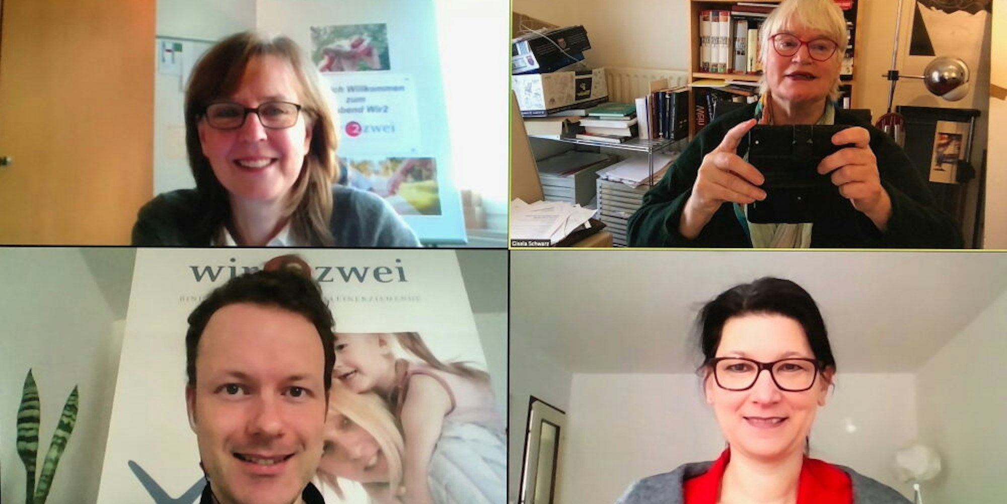 In Corona-Zeiten jedoch geht dies nur noch über Online-Meetings, etwa mit „Zoom“. Ab sofort auch in Bergisch Gladbach. „Sie sind nicht allein – Sie sind viele. Und nicht allein mit ihren Themen und auch Problemen“, stellte Bettina Goebel, Leiterin der Katholischen Familienbildungsstätte, den ersten Interessentinnen das Programm von „wir2“ vor, zusammen mit Diplom-Psychologe Daniel Hagen, Irene Rüttenauer vom Jugendamt Bergisch Gladbach sowie den beiden Kursleiterinnen Janine Hagen und Gerit Schader.