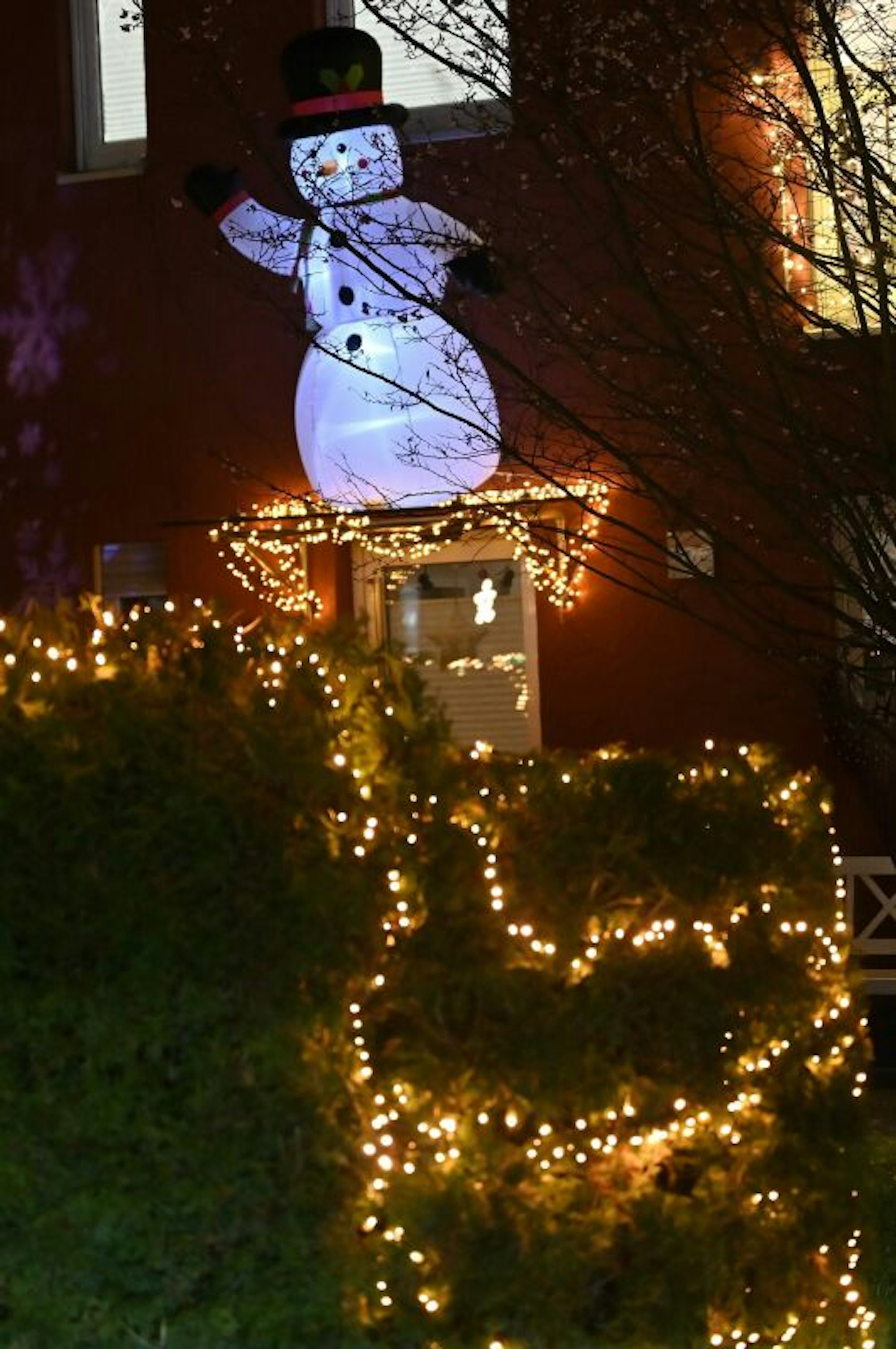 Die Weihnachtsmänner haben aber hierzulande einen überraschenden Konkurrenten: den Schneemann. Tatsächlich, der Geselle, der für die weiße Weihnacht zuständig und ansonsten eher eine Nebenrolle innehat, steht an manchem Hauseingang und läuft dem Mann mit dem roten Mantel ein bisschen den Rang ab. Beide vertragen sich aber, sind sie doch auch beisammen in den Vorgärten zu entdecken.