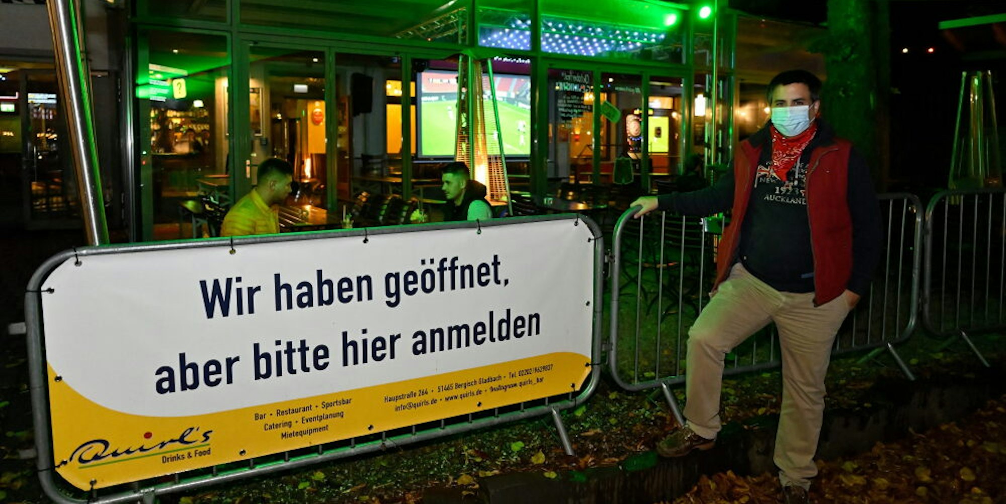 Rhein-Berg – Wenig begeistert sind die Wirte über die Sperrstunde, die der Kreis nach Maßgabe der Landesregierung auf 23 Uhr festgelegt hat. „Am Wochenende macht das für uns sehr viel aus,“ sagt Alexander Voßler, Geschäftsführer der Quirl’s Sportbar an der Gnadenkirche in Bergisch Gladbach, die sonst bis 3 Uhr geöffnet hat. Die Sperrstunde um 1 Uhr ginge ja noch, so Voßler. Dennoch: „Wir haben die ganze Saison über nur etwa die Hälfte des Umsatzes gemacht. Aber jetzt rechne ich noch einmal mit 80 Prozent weniger Einnahmen.“ Viele, befürchtet er, werden unter den Umständen gar nicht erst kommen.