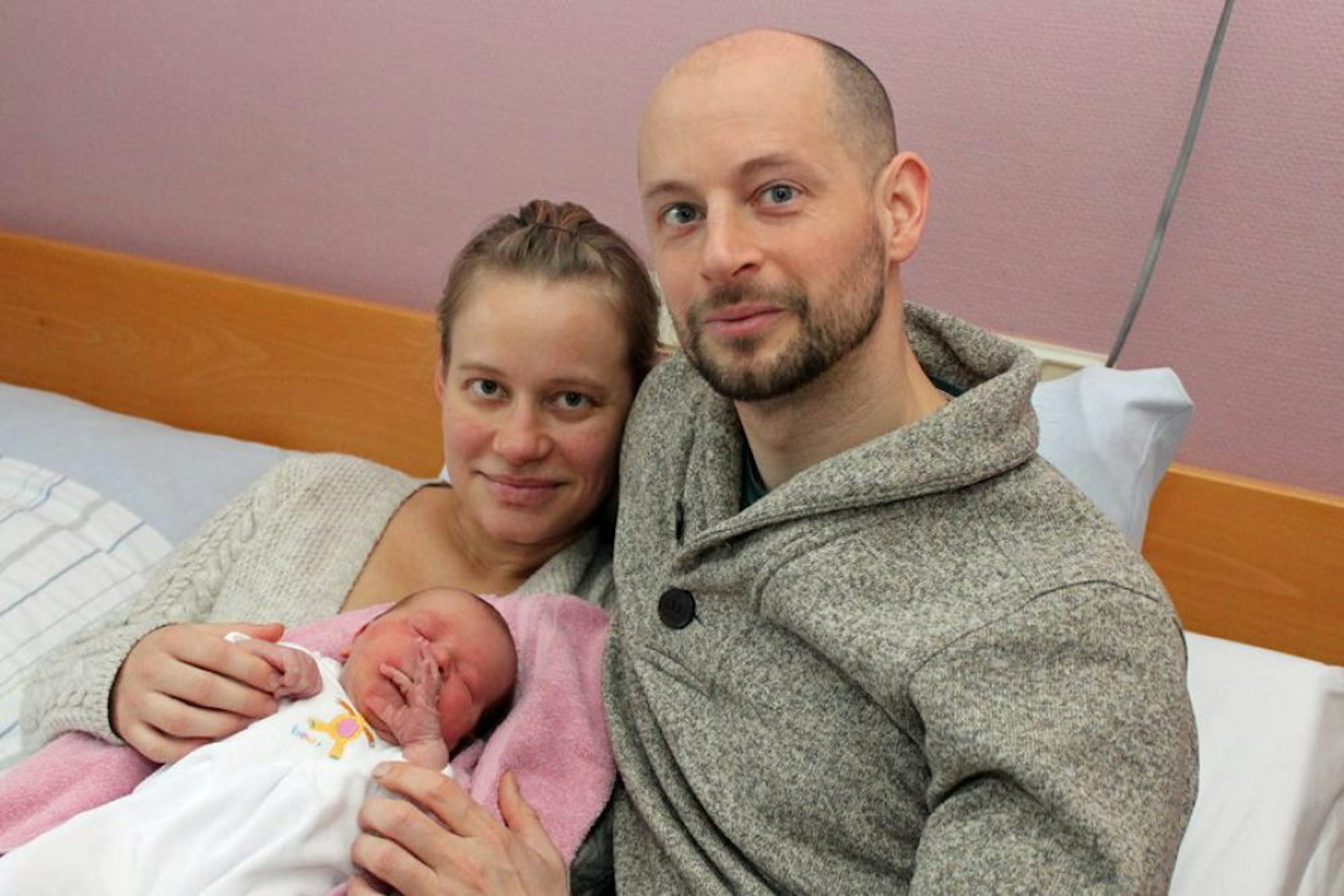 Pippa Baumann war es viel zu kalt auf dieser Welt. Und so chillte sie erst mal Haut an Haut mit ihrer Mama, während Papa Roland zu Hause die Tragetasche holte. Für ihn sei die kurze, schnelle und schmerzhafte Geburt eine überwältigende Grenzerfahrung gewesen. „Er hat sich sehr gefreut, als die Kleine endlich »rausgeflutscht« kam“, berichtet Ehefrau Simone. Die Familie wünscht ihrer Tochter, dass sie eine starke Frau wird.