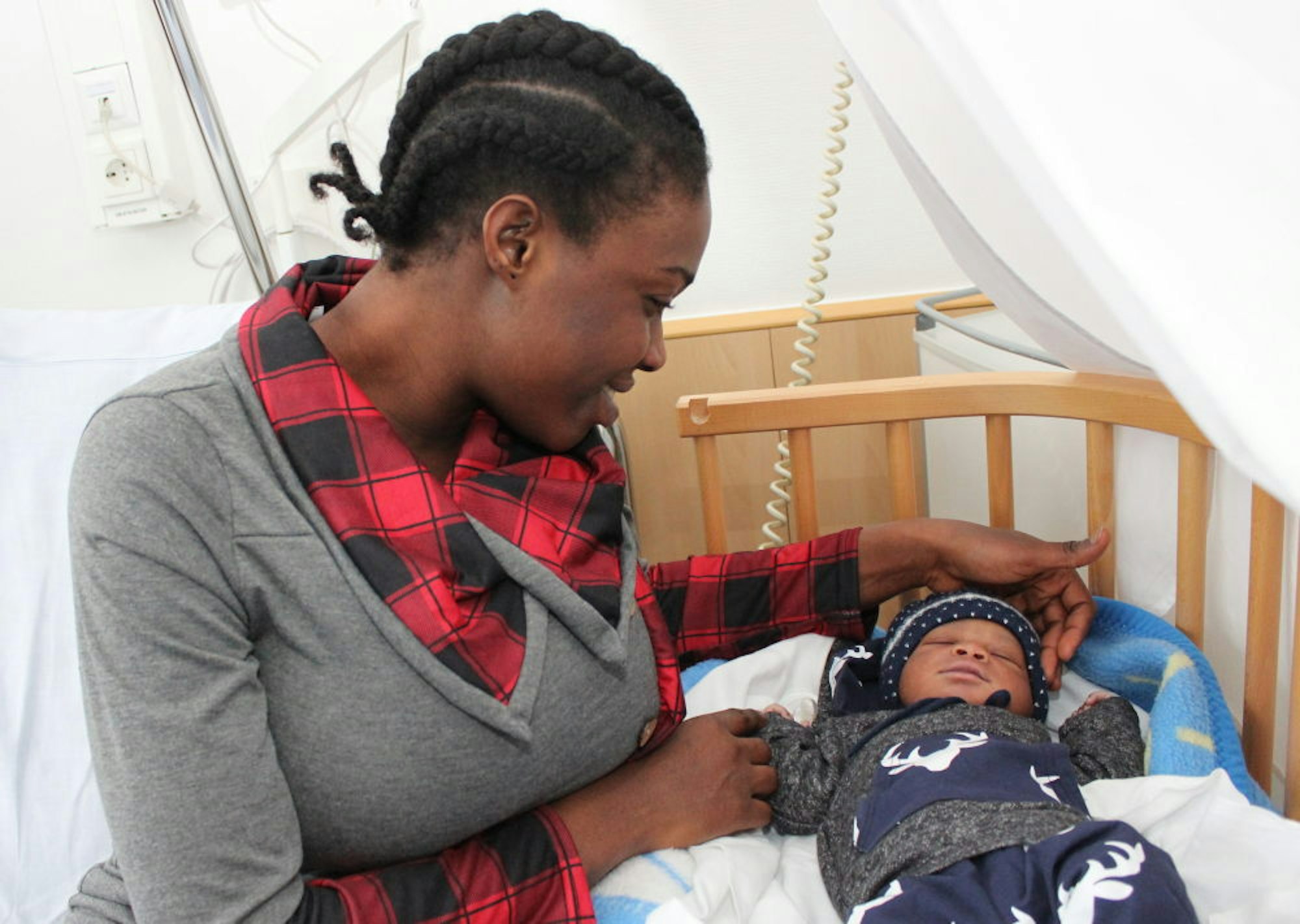 Die Familie von Aboubacar Saumaoro lebt seit zwei Jahren in Deutschland. Er kam um 8.06 Uhr auf die Welt, wiegt 3860 Gramm und ist 52 Zentimeter groß. Es war eine lange Geburt, ins VPH kamen die Eltern auf Empfehlung der Hebamme.