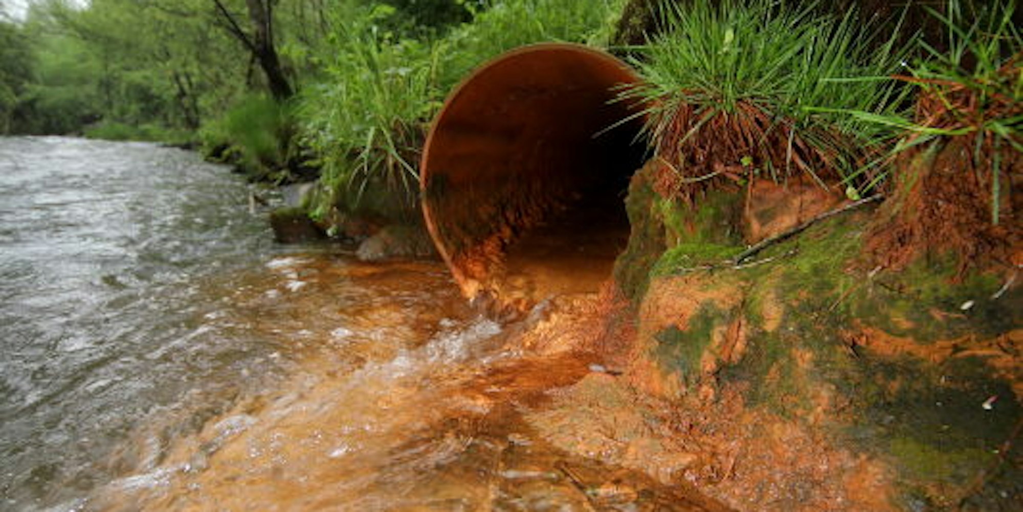 Rhein Berg – Rot gefärbt fließt das Wasser aus dem Grundabfluss des früheren Neuen Lüderichstollens in die Sülz. Die rote Färbung, die von oxidiertem Eisen herrührt, ist weniger dramatisch als die unsichtbaren Stoffe, die das Wasser an unzähligen Stellen entlang der Sülz in den Fluss spült.