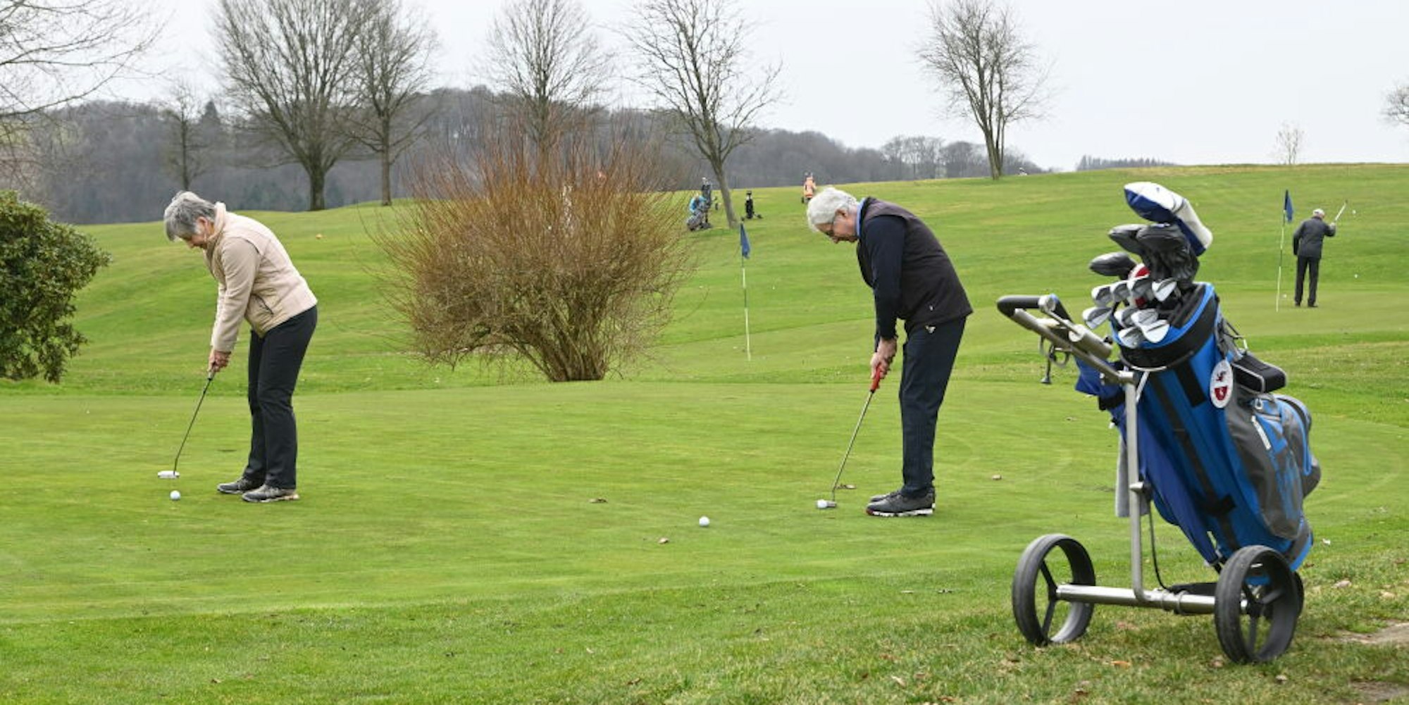 Auch in Kürten durfte nur mit Voranmeldung und Aufnahme der Personalien der Platz zum Spielen betreten werden. Für den heutigen Dienstag seien nur noch wenige Zeitfenster frei. Das sonnige Wetter habe für den Ansturm gesorgt, vor zwei Wochen sei bei Schnee ein Spielen gar nicht möglich gewesen. Die Starterlaubnis war auf der Kürtener Anlage wie andernorts auch nur mit Clubmitgliedschaft möglich. Der kleinere Neun-Loch-Platz könne jedoch relativ spontan zum Spielen aufgesucht werden.