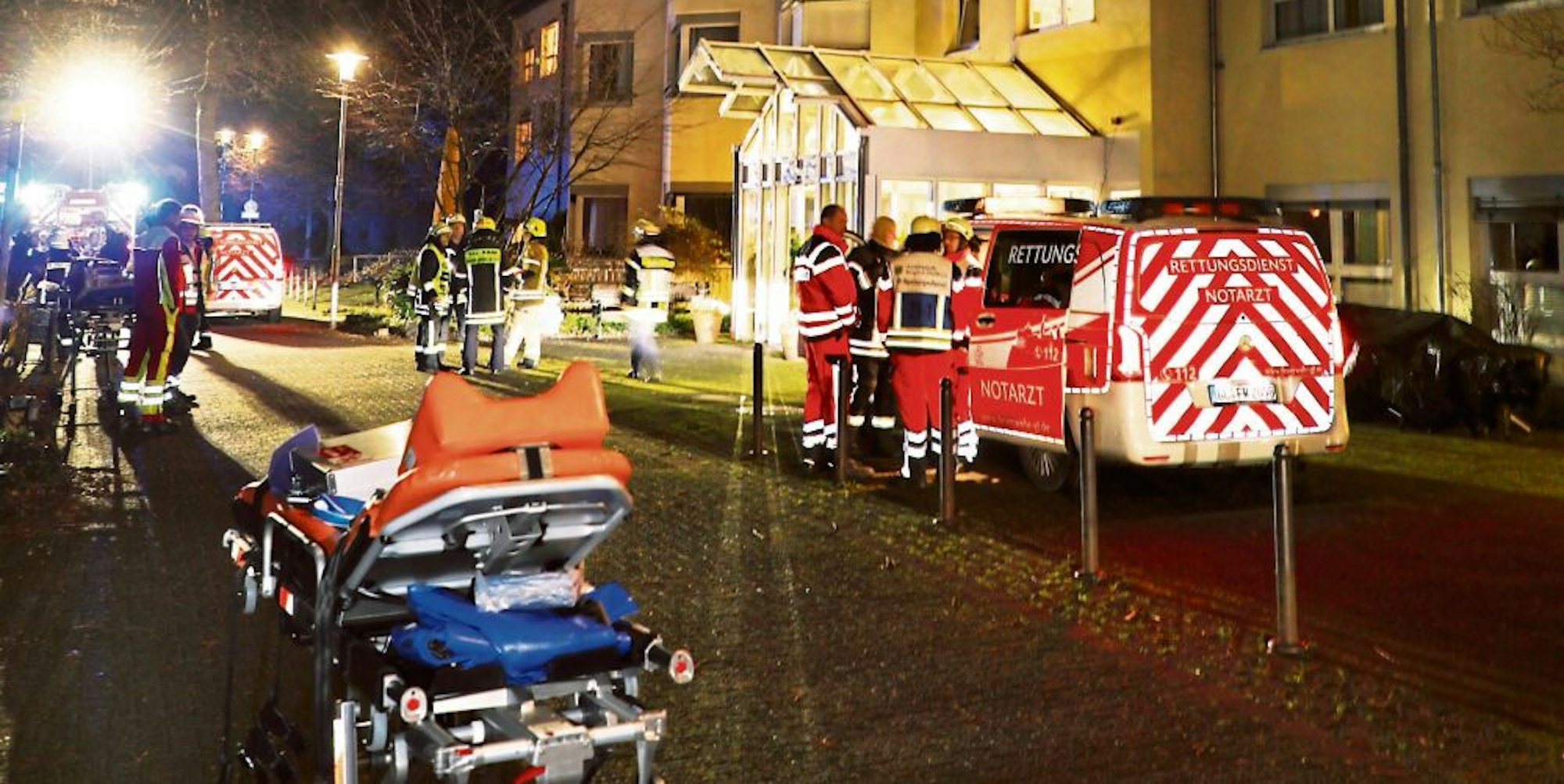 Ein Notarzt im Einsatz bei einem Brand im Seniorenzentrum Saaler Mühle im Januar 2020 in Bergisch Gladbach.
