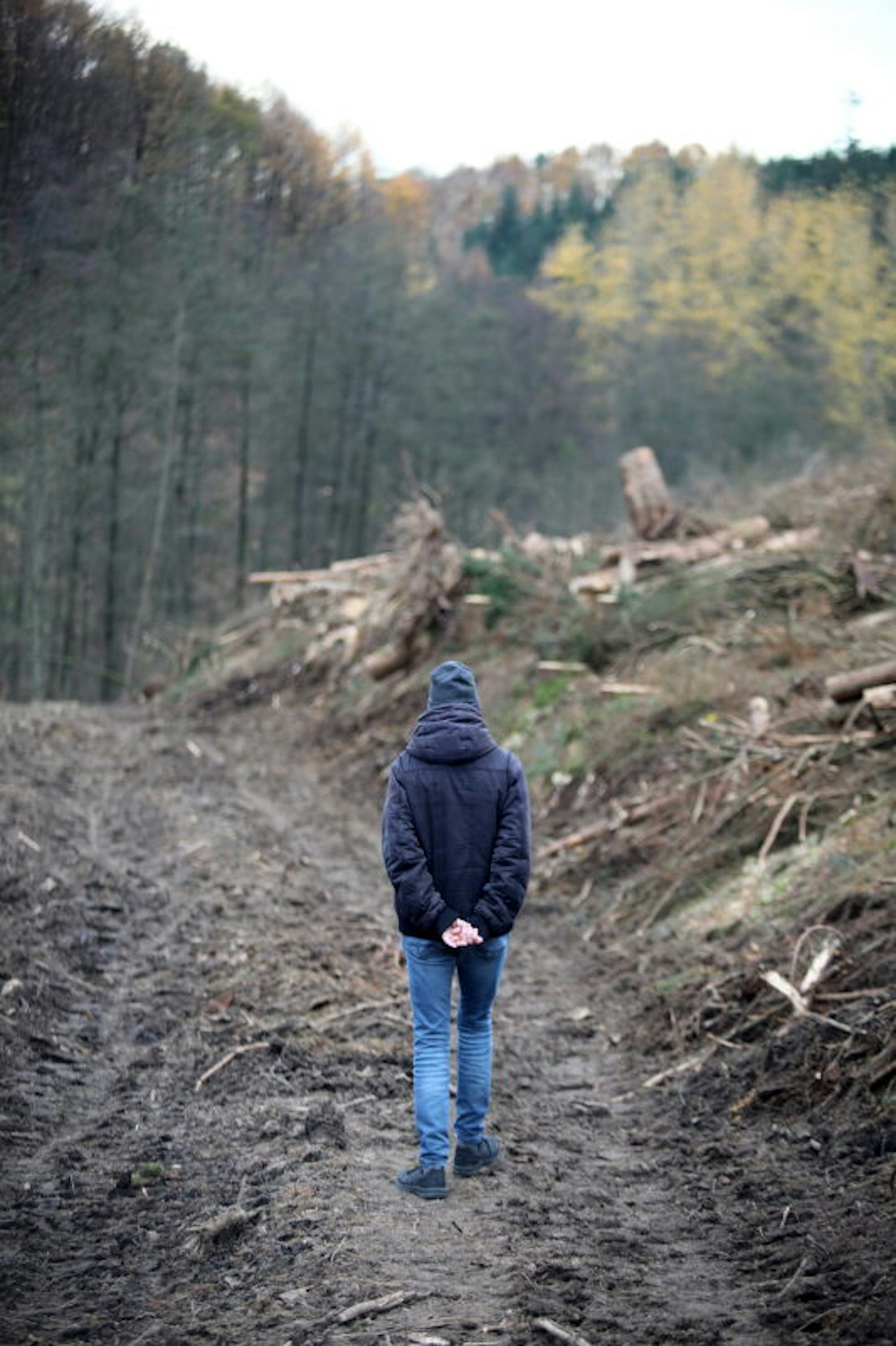 Auf der anderen Straßenseite folgen wir dem Gehweg nach rechts und passieren eine Trafostation. Wie heißt der Ort, der auf der Herstellerplakette angegeben ist? Von diesem Ortsnamen notieren wir den drittletzten Buchstaben als fünften unseres Lösungsworts, bevor wir dem Gehweg entlang der Durbuscher Straße weiter über die Höhe zum Wald folgen.