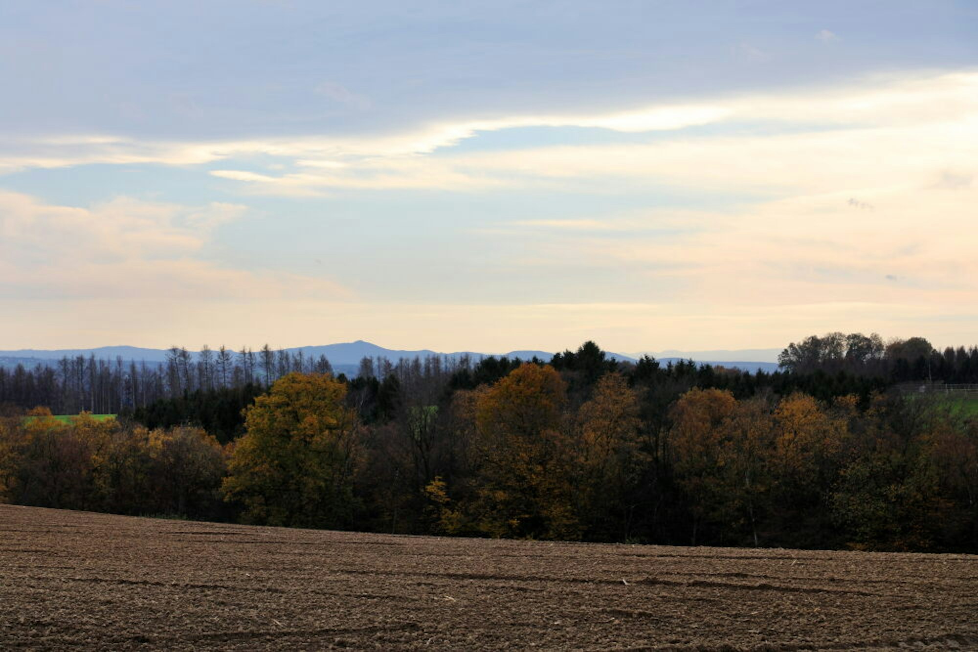 Bei Großdorbusch schweift der Blick bis zum Siebengebirge mit dem Großen Ölberg am Horizont.