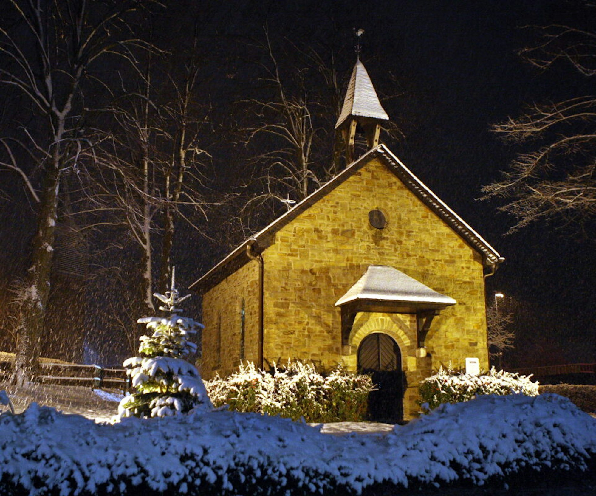Die Heiligenhauser Rochuskapelle im ersten Schnee.