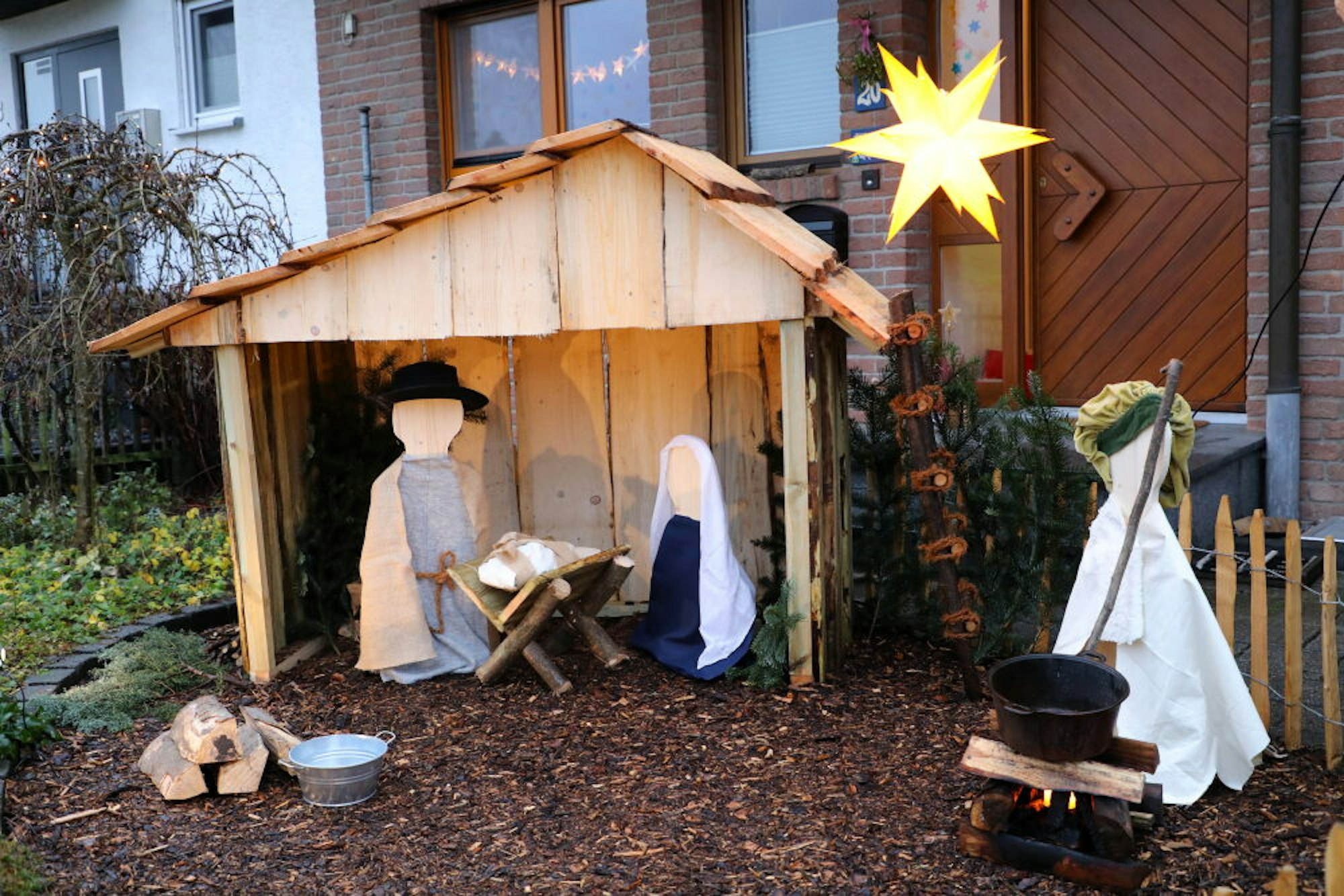 Das Jesuskind im Stall: Ein Krippe ist in Großschwamborn in einer Hauseinfahrt zu sehen.