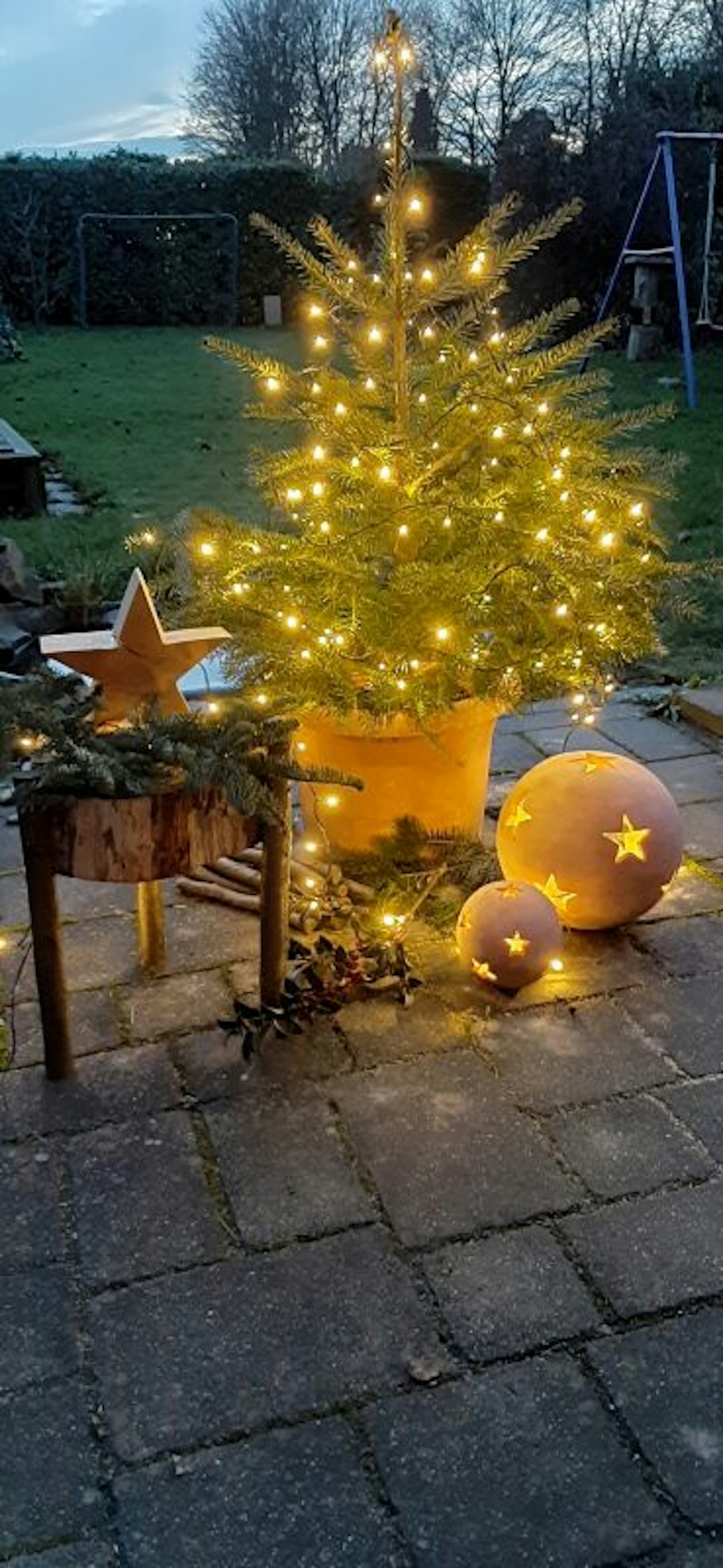 Weihnachtlicher Glanz in einem Garten am Wegesrand.
