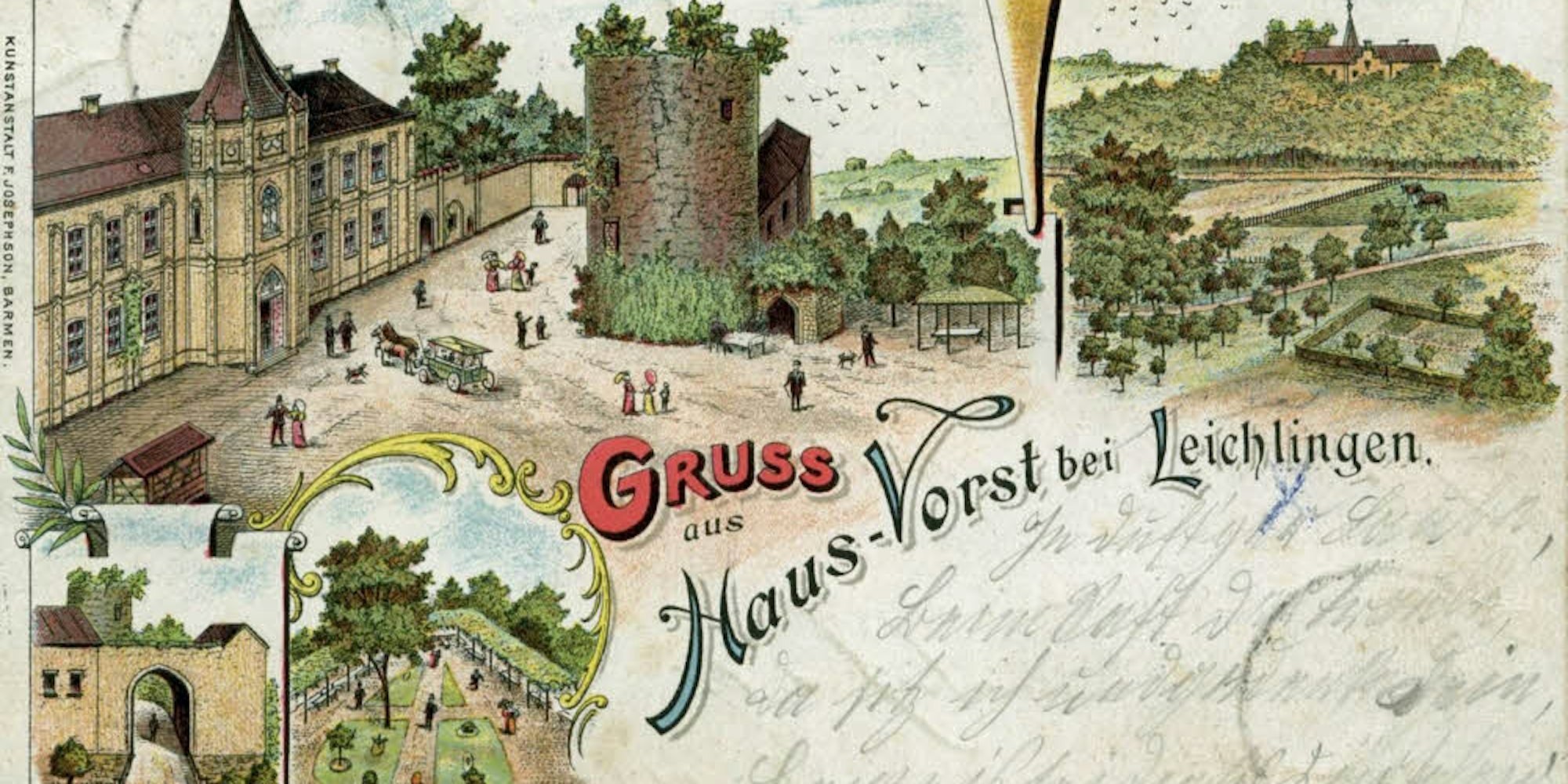 Eine Lithografie mit vier Motiven für eine Ansichtskarte aus dem Jahre 1898.