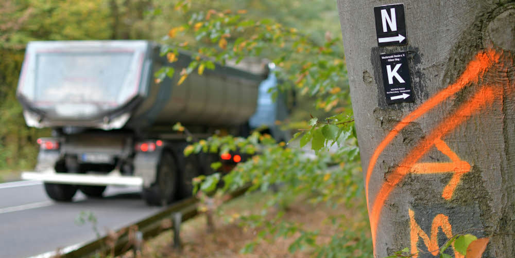 Die Bäume an der Landesstraße 288, die gefällt werden sollen, sind laut Regionalforstamt schon seit circa einem Jahr gekennzeichnet. Allerdings wurden die Markierungen zunächst an der Rückseite der Bäume angebracht, das sollte Aufsehen vermeiden.