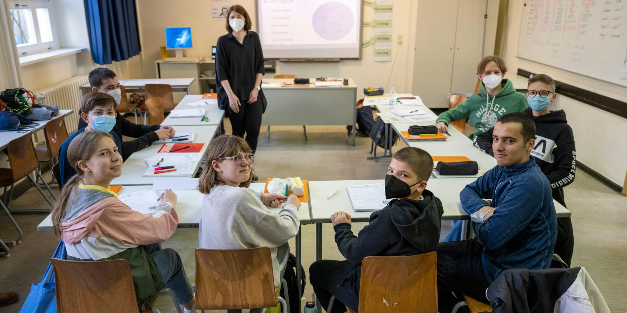 Mit unterschiedlichen Konzepten wird an den Schulen auf die neuen Schüler aus der Ukraine reagiert. Das Foto zeigt einen Willkommensklasse in Berlin.