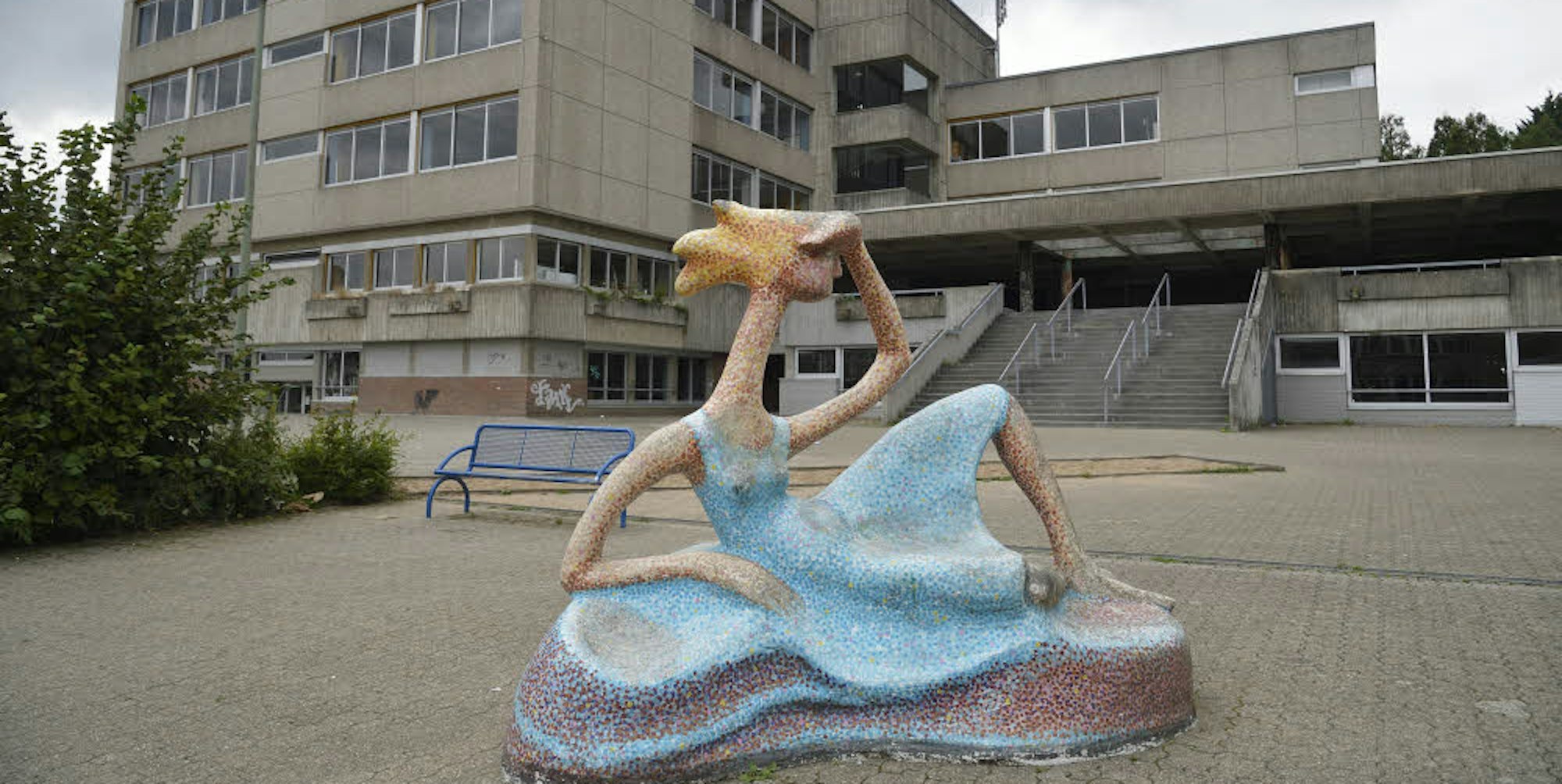 Hat die künftige neue Schule in Rösrath fest „im Blick“: Die Skulptur , die vor dem Freiherr-vom-Stein-Schulzentrum steht.