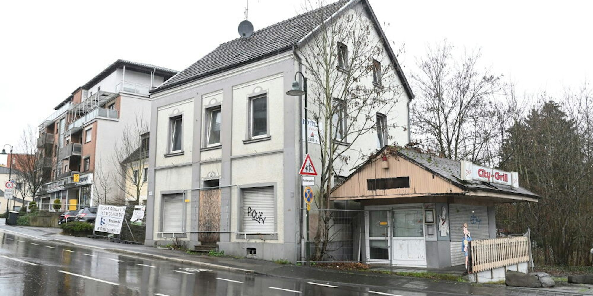 Bisher bietet das Gelände, das nun neu bebaut werden soll, ein unschönes Bild. Es befinden sich dort die komplett oder überwiegend leerstehenden Wohnhäuser Hauptstraße 11 und 13 sowie ein ehemaliger Imbiss, der seit Jahren nicht mehr in Betrieb ist. Es ist ein Bild des Verfalls, der Zugang zu einem der Wohnhäuser ist mit einem Bauzaun verrammelt. In der kommunalpolitischen Debatte war immer wieder von einem „Schandfleck“ die Rede, Initiativen für eine attraktive Gestaltung scheiterten aber bisher.