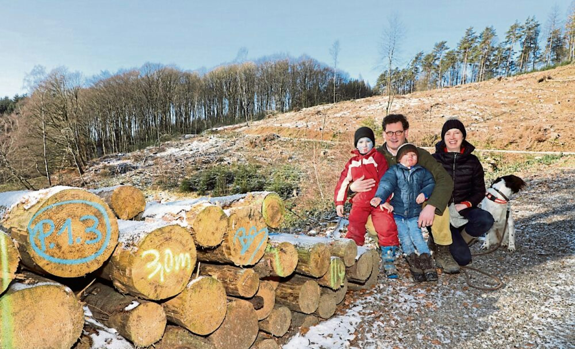 Die durch Borkenkäfer und Trockenheit zerstörten Flächen will Joachim Freiherr von Lüninck, hier mit Ehefrau Elisabeth und den beiden jüngsten der sechs Kinder, klimastabiler wieder aufforsten.
