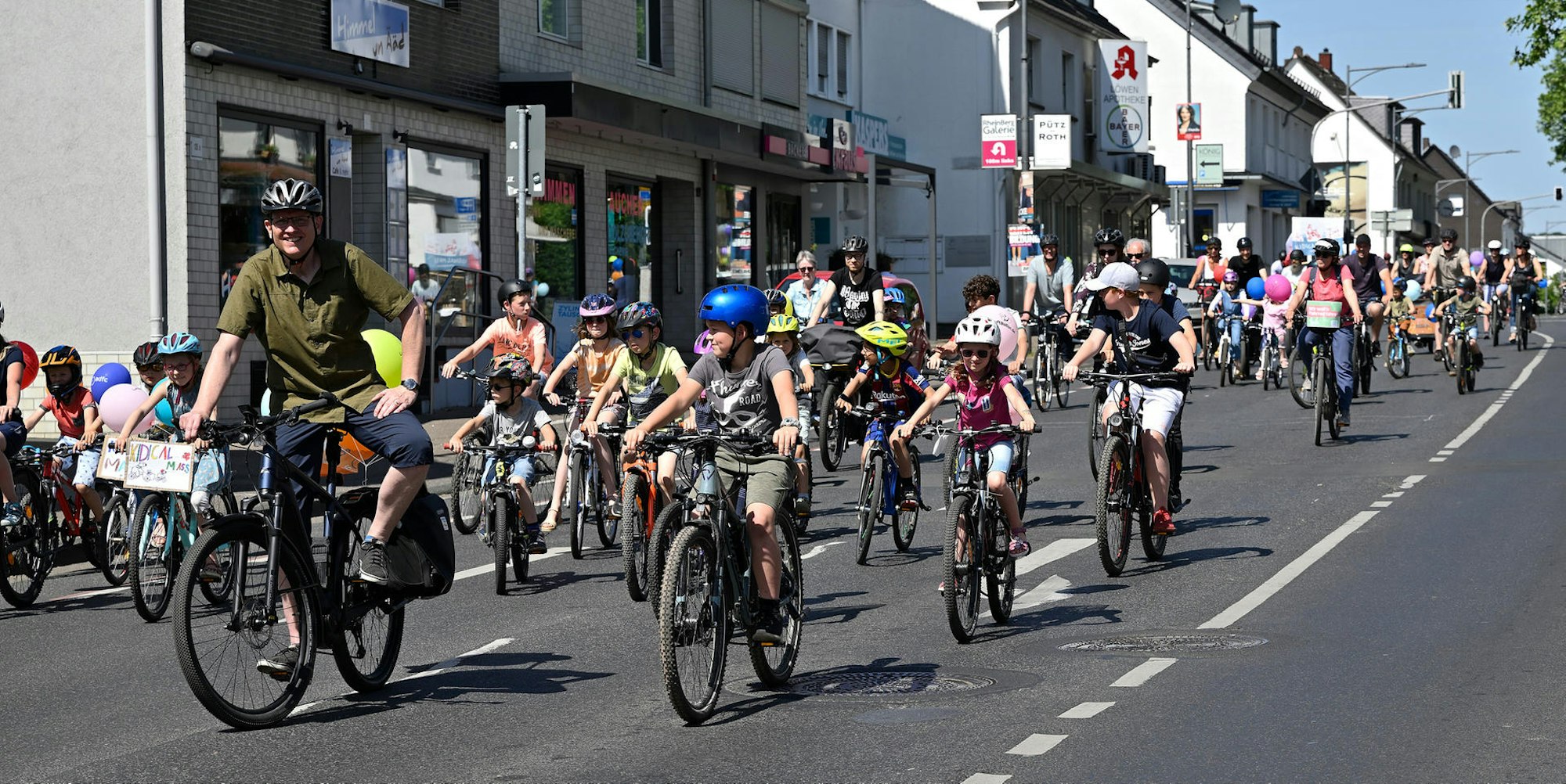 Erwachsene und Kinder waren bei der zweiten „Kidical Mass“ in Rösrath unterwegs, um so für sichere Radwege für alle zu demonstrieren.