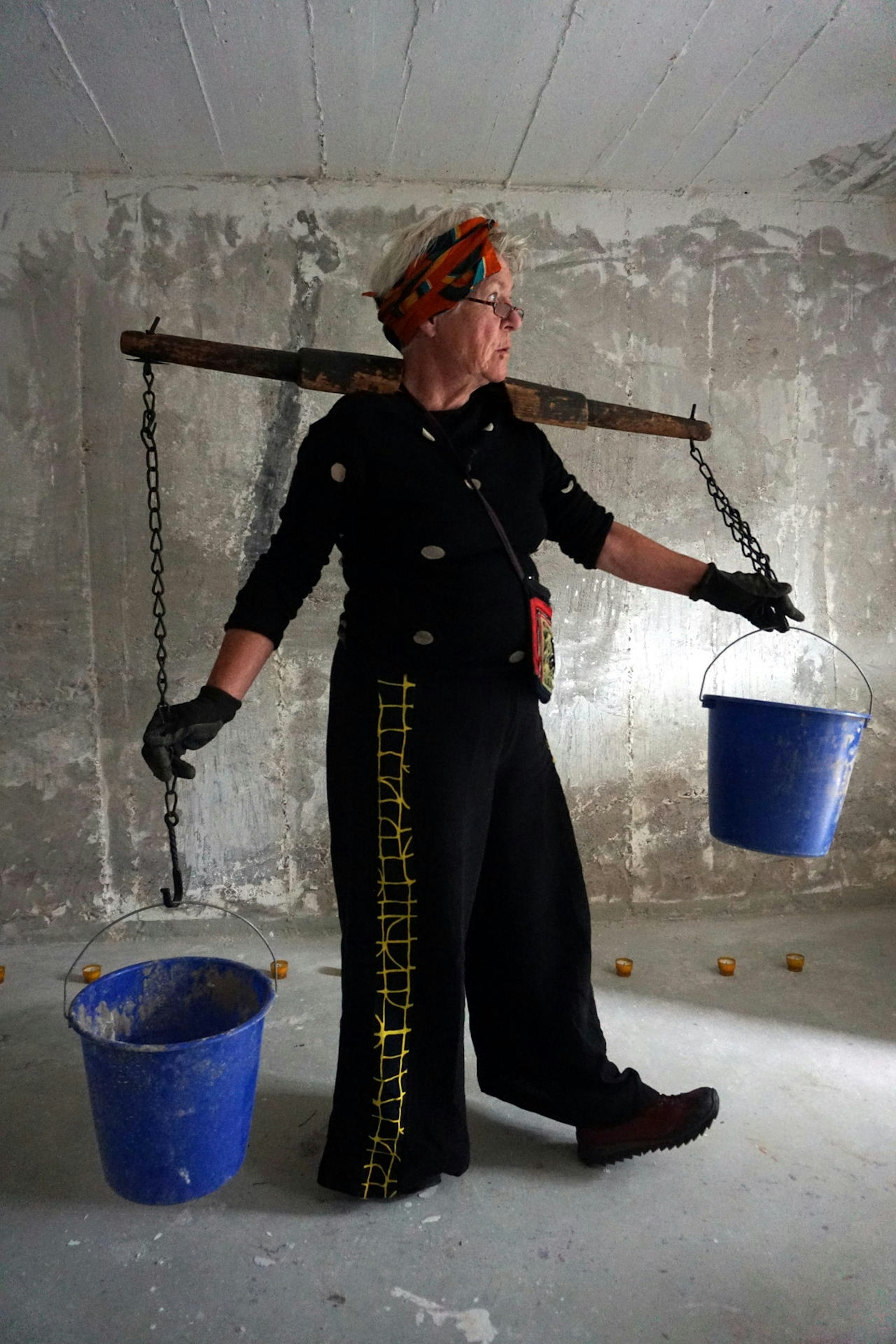 Sich selbst hat Ulrike Oeter als Wasserträgerin in Szene gesetzt.