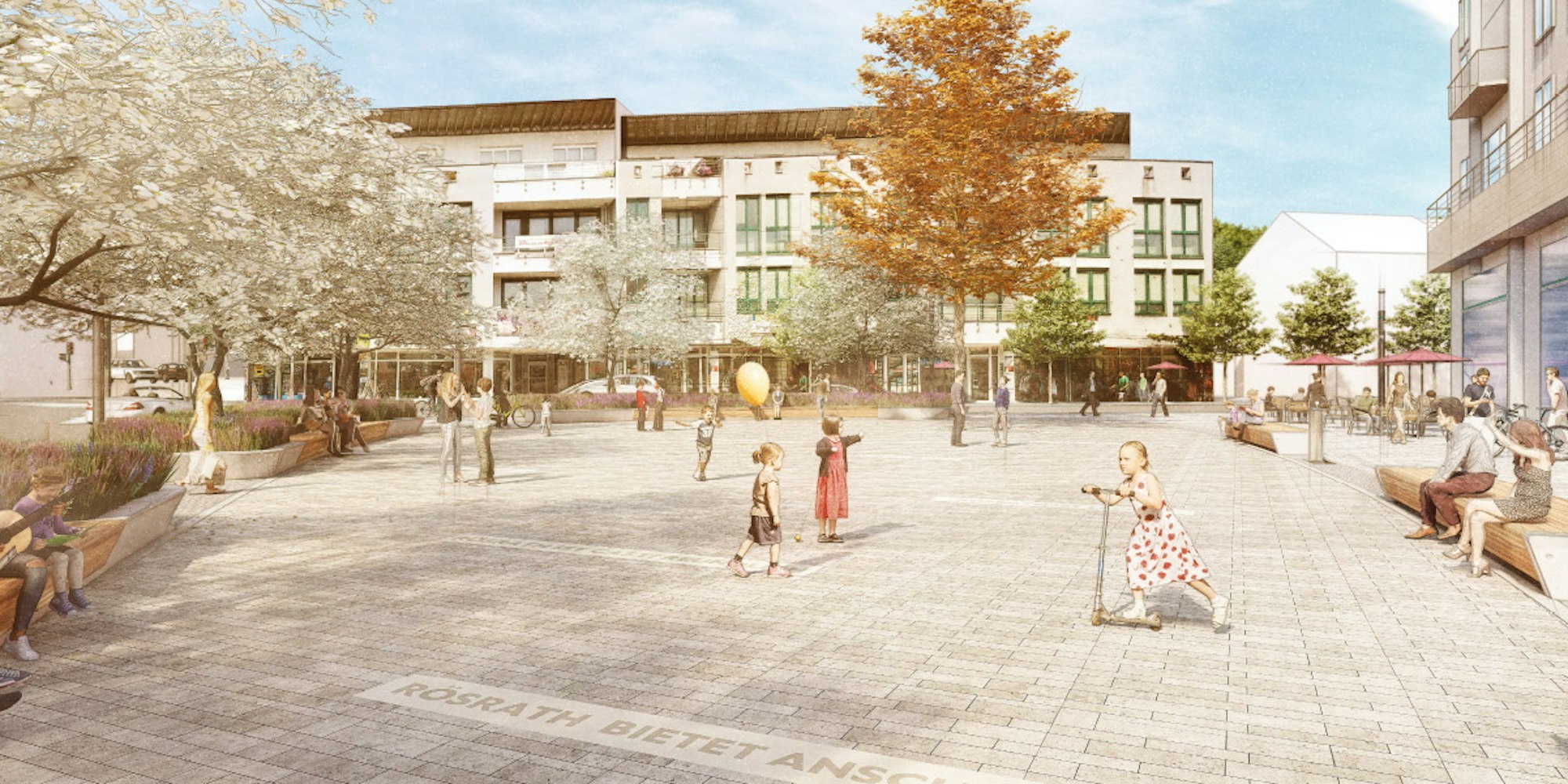Allerdings seien viele Flächen dort in privatem Eigentum: Initiativen von Privatleuten, insbesondere auch Geschäftsleuten des Vereins „Gemeinsam für Rösrath“, seien willkommen. Gestalterische Elemente auf dem Platz, zum Beispiel Bänke, ließen sich anderswo fortzuführen. Auch eine Mitfinanzierung aus Landesmitteln sei denkbar.