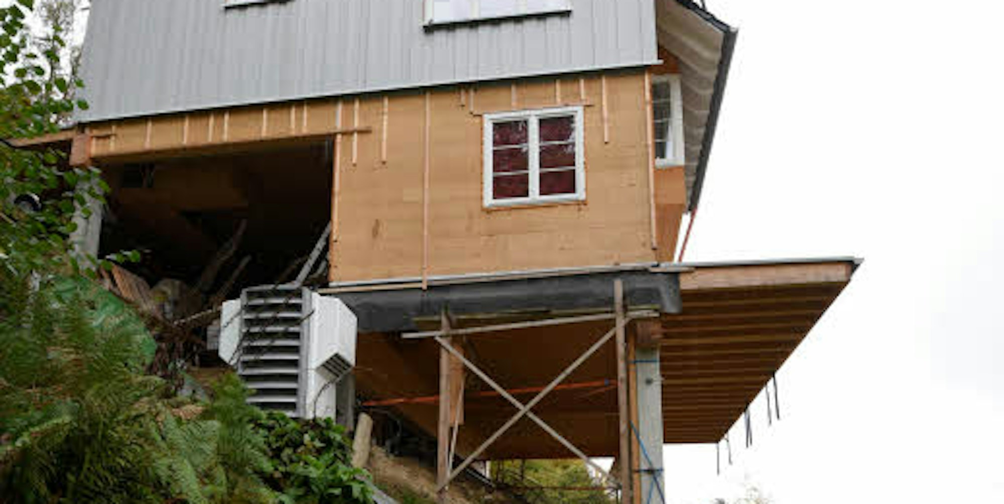 Mit Stelzen ist das Haus stabil in den Hang gebaut.