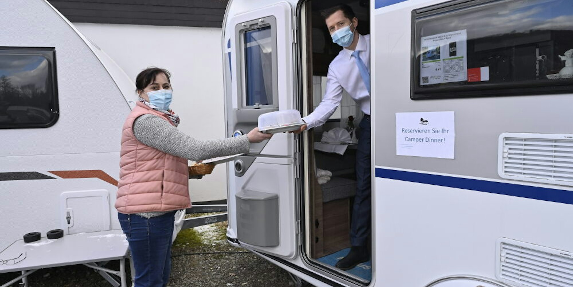 Ein entscheidender Faktor ist die Zusammenarbeit des Restaurants mit der Firma Travel-Camper, die die Wohnwagen vermietet: Damit steht das Angebot im Einklang mit den Pandemie-bedingten Vorgaben. Zur Erläuterung: Familie X mietet erstens einen Wohnwagen, was erlaubt ist; Familie X lässt sich zweitens Speisen und Getränke liefern, was ebenfalls erlaubt ist. Wohnwagen-Vermieter und Speisen-Lieferant sind unterschiedliche Anbieter, die Übergabe der Speisen an der Wohnwagen-Tür ist nicht zu beanstanden.