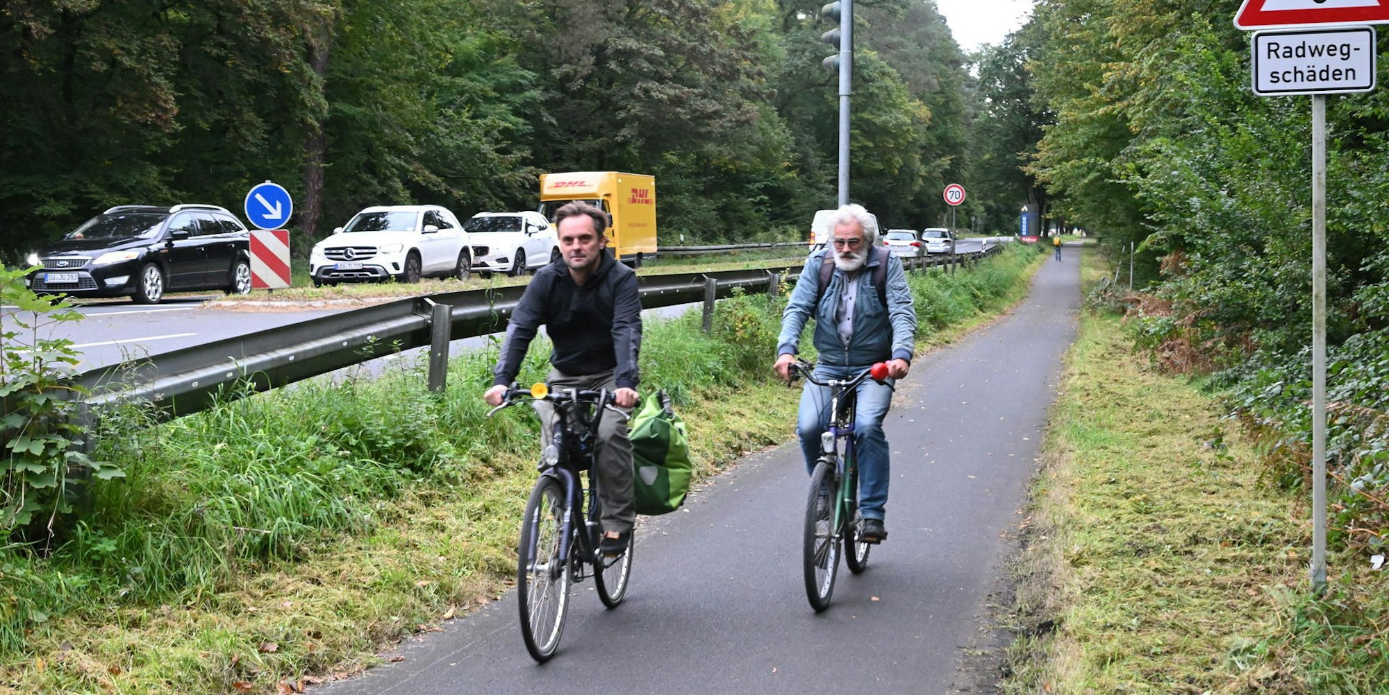 Johannes Thies (links) und Johannes Schweinem fordern, den häufig befahrenen Radweg zu sanieren.