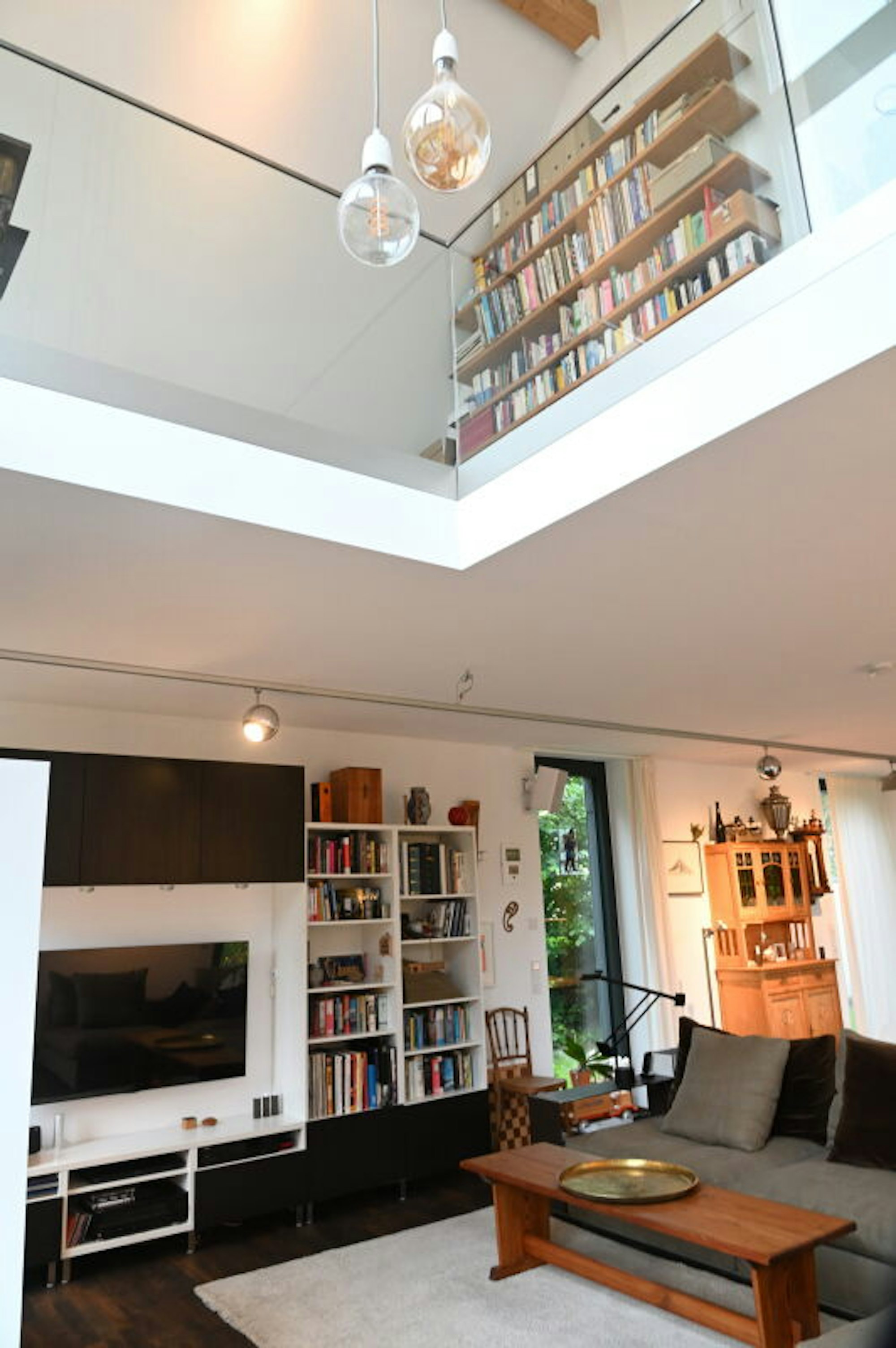 Der Raum für Wohnen, Essen und Kochen ist großzügig, das erreichte Tobias Palm auch mit großen Fenstern und dem Durchblick zur oberen Etage.