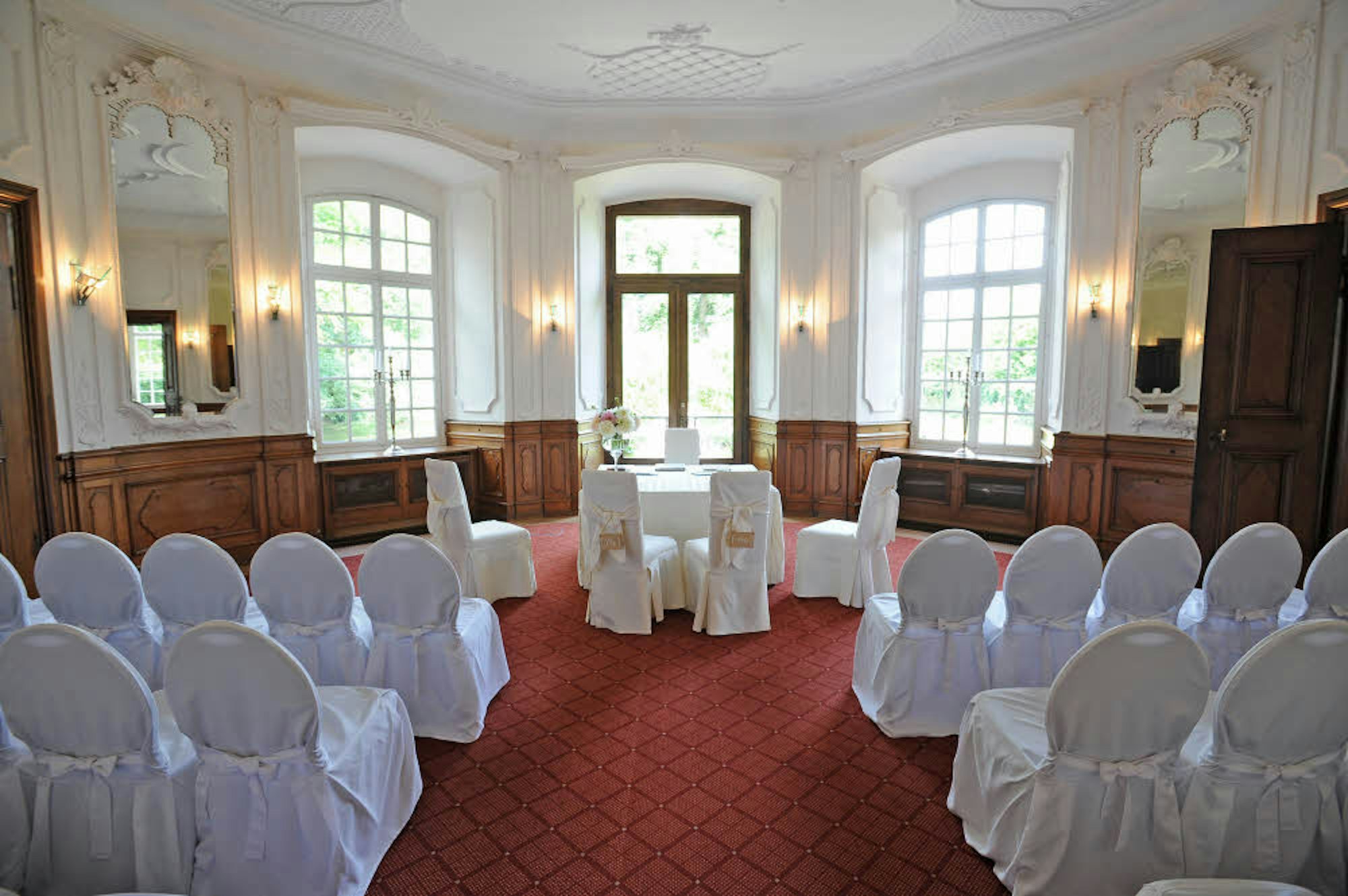 Im Spiegelsaal von Schloss Eicherhof klingt das Ja-Wort besonders festlich. Bei schönem Wetter wird auch draußen im Park getraut.