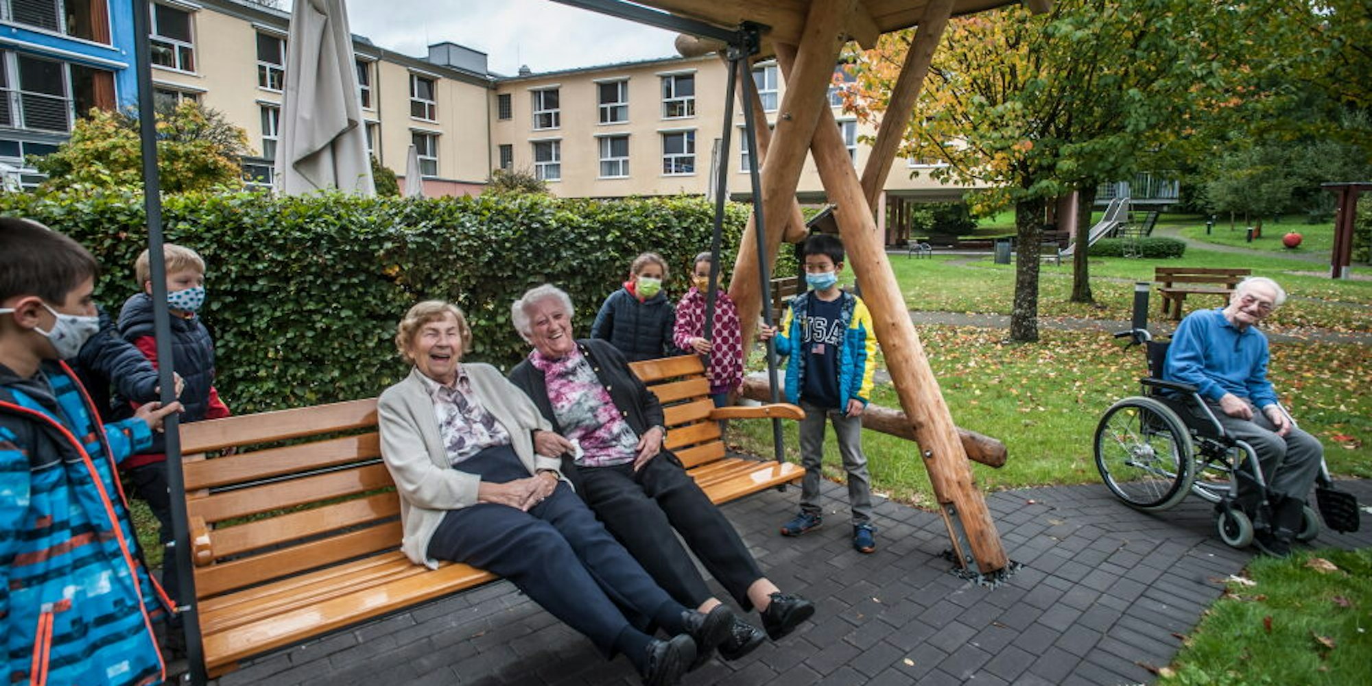 Leichlingen – Ein solches Prachtexemplar kann man sich nicht backen, findet man auch nicht im Baumarkt-Katalog oder Internet: Ein Zimmermann aus Lützenkirchen hat die Seniorenschaukel entworfen und gebaut, die nun im Garten des Seniorenzentrums Hasensprungmühle eingeweiht wurde. Aber daran mitgebacken haben die Kinder und Eltern der Katholische Grundschule Kirchstraße – denn ihre Spende aus dem Verkauf selbstgebackener Plätzchen beim Bratapfelfest 2019 hat den Anstoß für die neueste Attraktion im Altenheim gegeben.