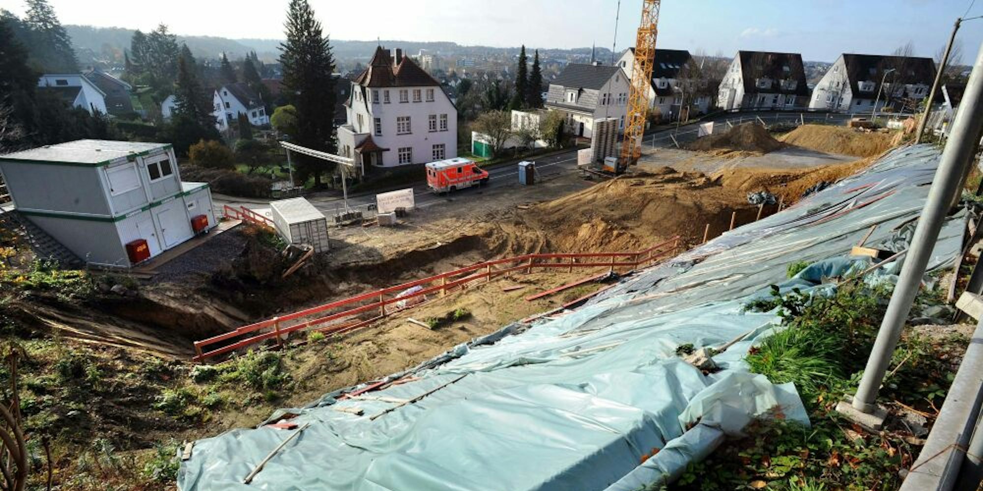 Warum die Bauarbeiten derzeit ruhen, sei der Verwaltung nicht bekannt. Auch vom Bauunternehmen gab es bisher dazu keine Auskunft. Die Vivawest Wohnen GmbH baut hier bis 2022 ein Dutzend Eigentumswohnungen in zwei Gebäuden mit Tiefgarage. Kritik aus der Bürgerschaft, dass man auf diesem steilen Gelände besser nie gebaut hätte, teilt Weiß nicht. Das Vorhaben entspreche dem vom Rat beschlossenen rechtskräftigen Bebauungsplan. Das Projekt sei „nicht ganz einfach, aber machbar und keine Gefahr“, sagte die Amtsleitern: „Ich sehe das nicht als dramatisch an“.
