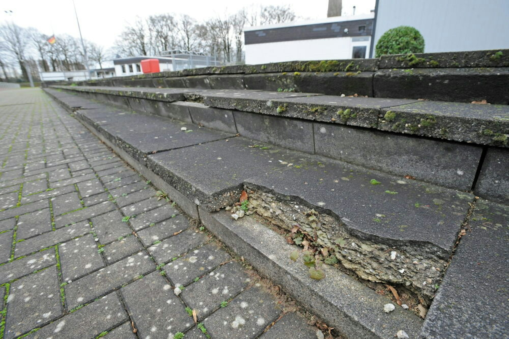 Der triste Eingangs- und Zuschauerbereich des Witzheldener Sportplatzes am Funkturm soll für eine halbe Million Euro renoviert werden.