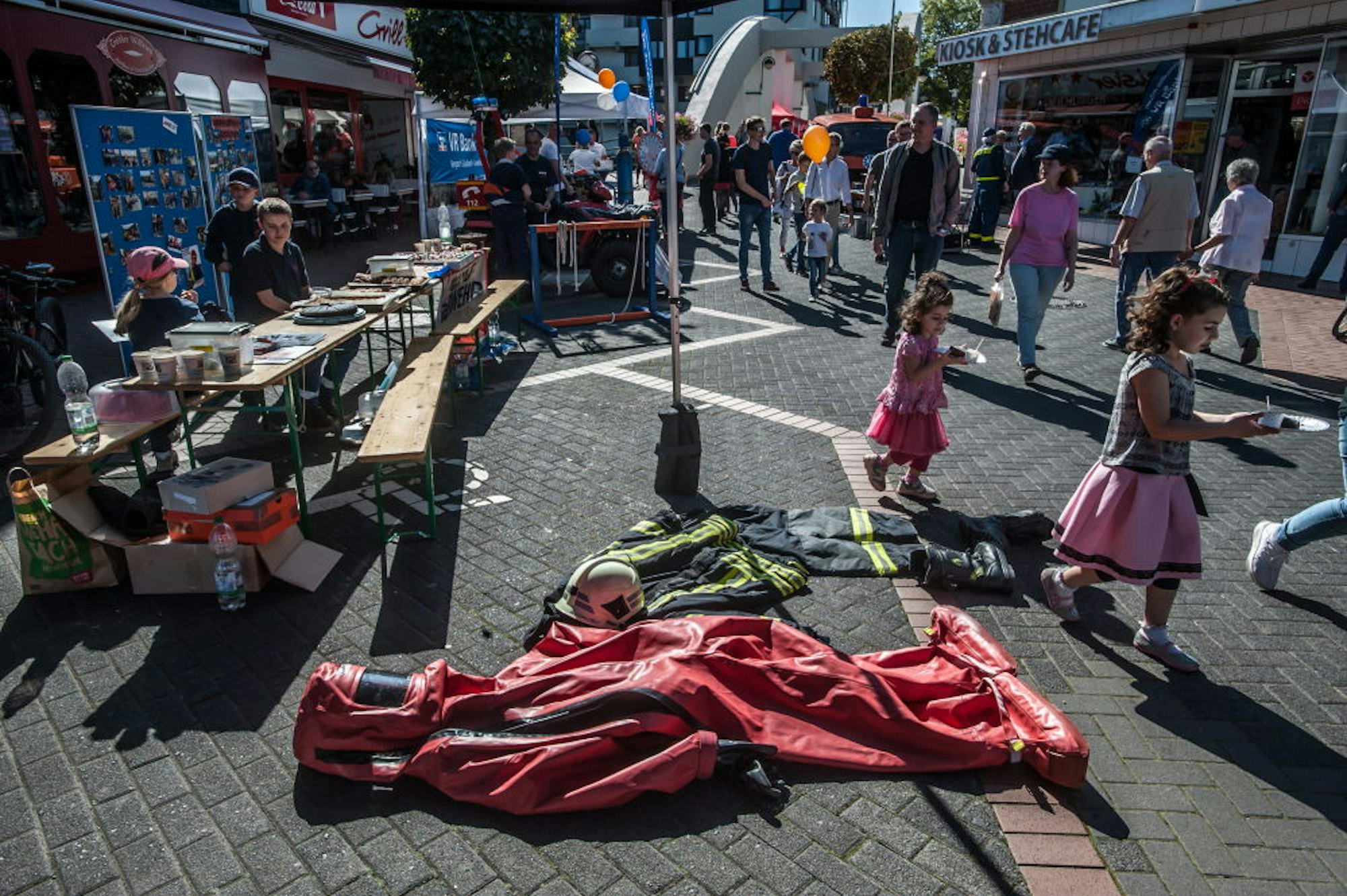 Schon tagsüber waren die Stände von drei Dutzend Vereinen und rund 50 Händlern gut besucht, von der „Blaulichtmeile“ mit Feuerwehr, Technischem Hilfswerk, DLRG und Rotem Kreuz jenseits der Marly-Brücke bis zur Hüpfburg auf der Postwiese am anderen Ende trafen sich die Leichlinger. Hier verkauften die Mütter vom Schulverein Bennert selbst gemachte Marmeladen, da war der Reibekuchenstand der Katholischen Grundschule Kirchstraße stets belagert.