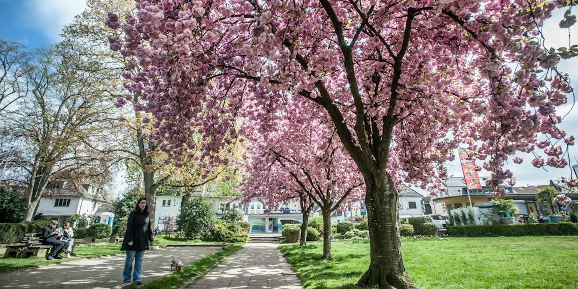 Japanischen Zierkirschen im alten Leichlinger Stadtpark. Diese Baumreihe wird nicht gefällt, sondern zur Allee erweitert.
