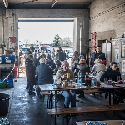 Vor dem Krieg in der Ukraine geflüchtete Menschen bei ihrer Ankunft in Leichlingen.