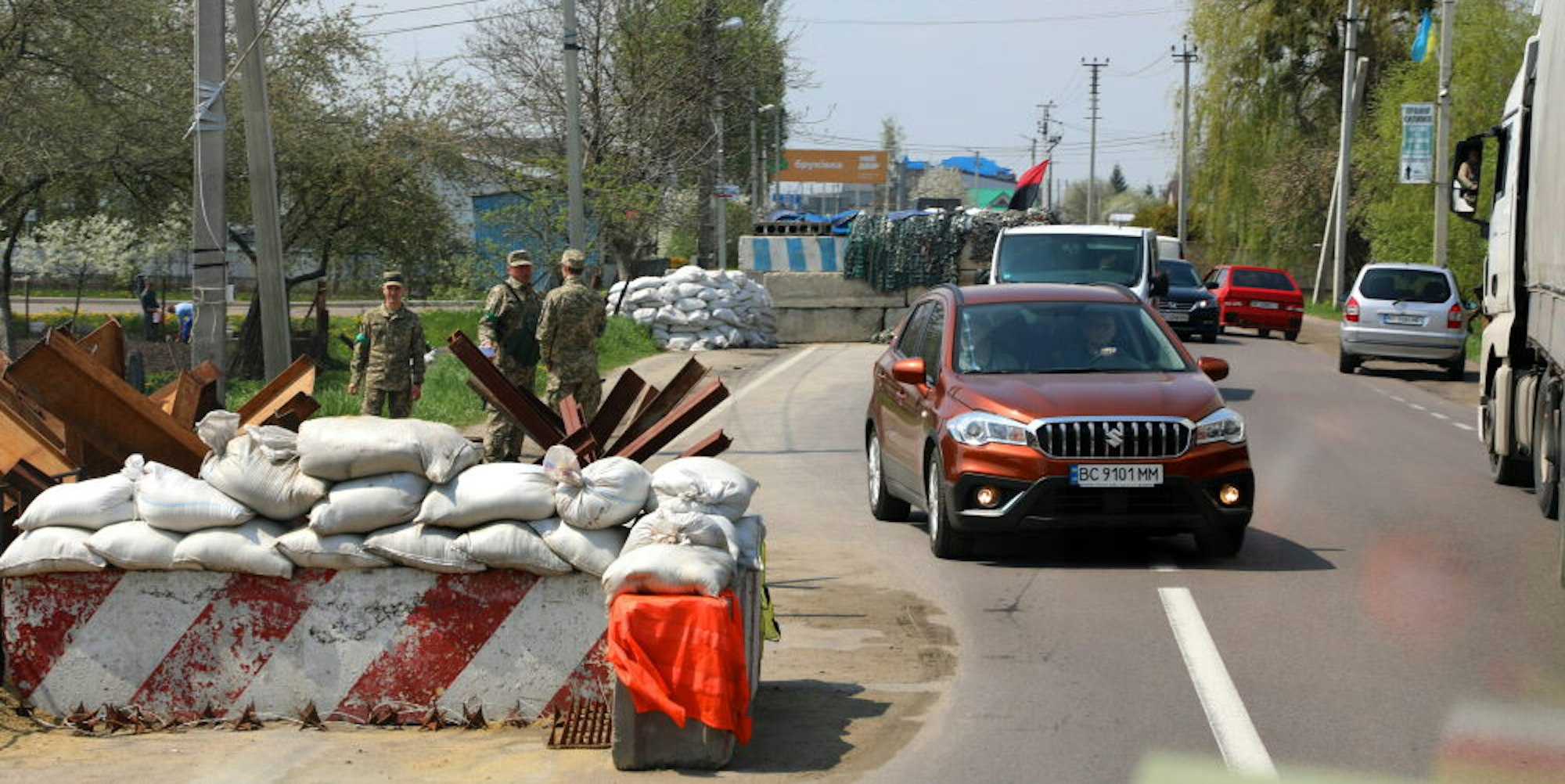 An die Checkpoints auf den Straßen haben sich die Konvoi-Fahrer beim Rückweg durch die Ukraine fast schon gewöhnt..