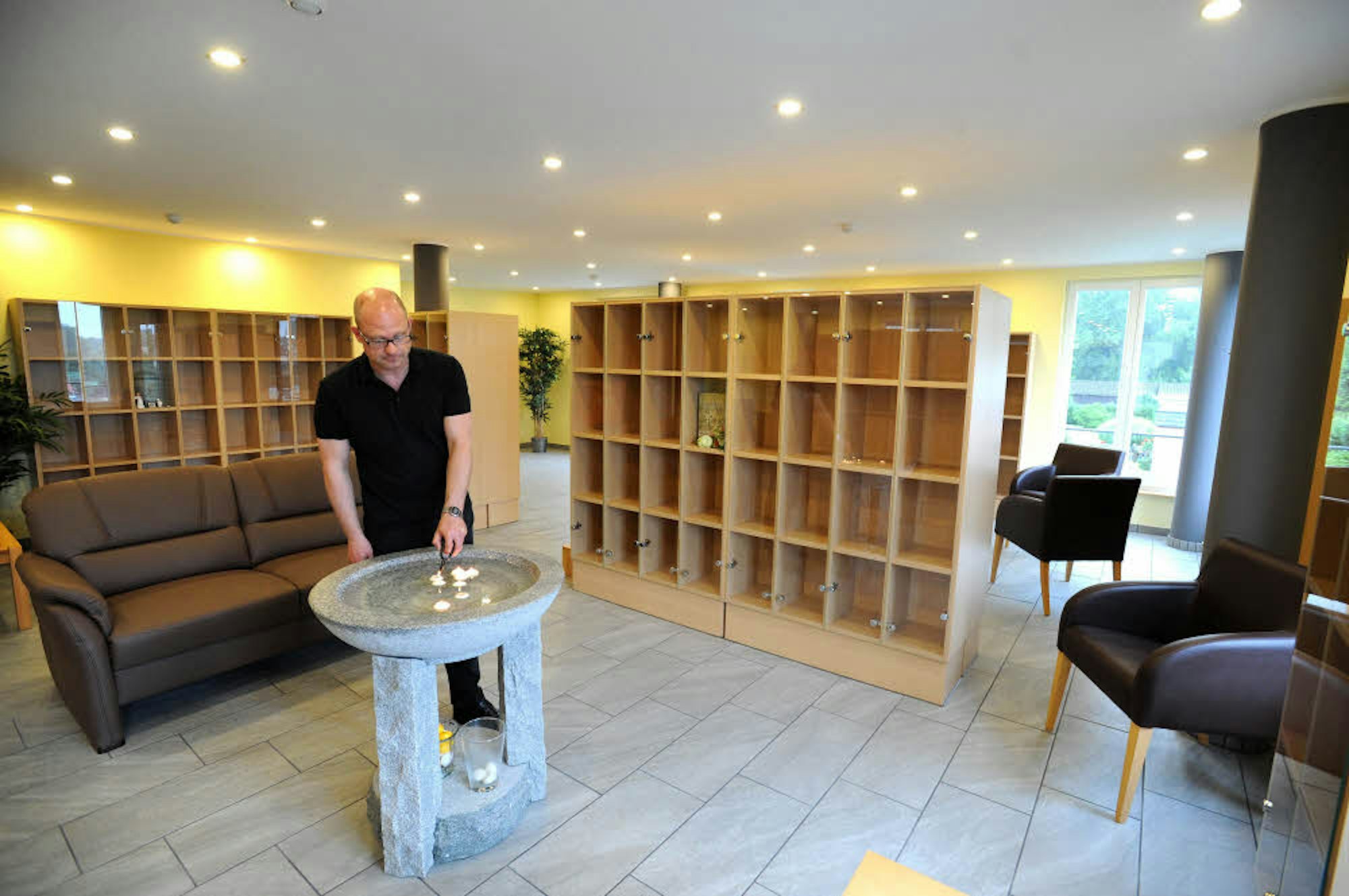 Als Ort der Begegnung, der Erinnerung und des Abschieds kann das mit Sitzgruppen, einem Wasserbecken mit Kerzen sowie Toiletten ausgestattete Kolumbarium von den Angehörigen jederzeit aufgesucht werden. 300 Urnenplätze stehen in den Schrankfächern zur Verfügung – Erweiterungen sind möglich. Mit der bisherigen Nachfrage ist Inhaber Jens Schlage „sehr zufrieden“.