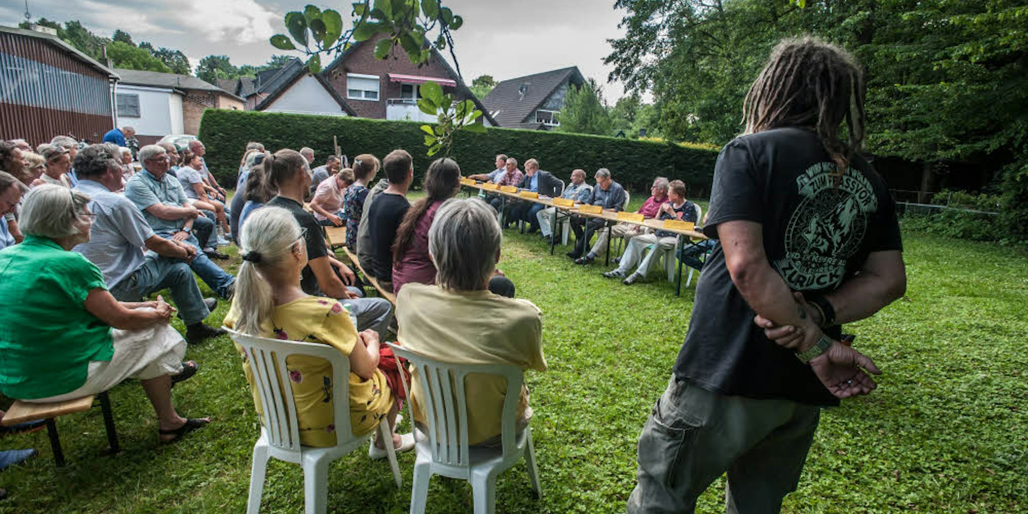 Transparenz vermissen auch Politik und Verwaltung. Bürgermeister Stefan Caplan sieht derzeit mehr Fragen als Antworten. 41 Folien der Deges haben alle Fraktionen genau studiert und bis auf das BfB sich gegen den Bau ausgesprochen. „Wir verlieren Zeit, wenn im Hintergrund die Vorplanungen gestartet werden, dann werden wir von den Ergebnisse schnell überrollt“, befürchtet Elias. In Richtung der Fraktionschefs, die sich auf dem Gelände des Sängerheims nun mit den Bürgern austauschte, fragte er: „Wie lässt sich die Vorplanung stoppen?“