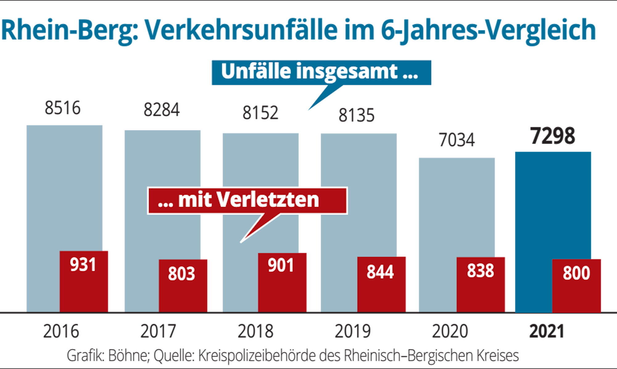 Verkehrsunfall-Statistik 2021 im Rheinisch-Bergischen Kreis.
