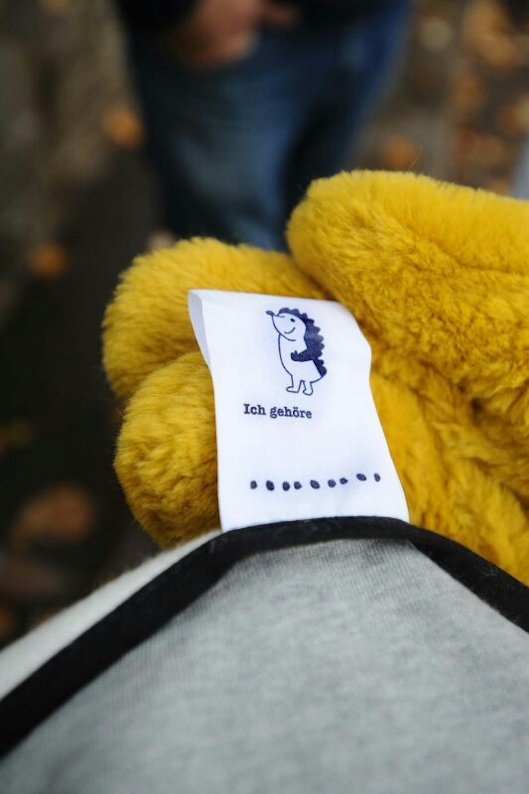 Die 250 Decken reichen für alle 228 Schülerinnen und Schüler und auch Lehrer, die eine haben möchten. An jedem Exemplar ist ein Anhänger angenäht, auf den der Name des Kindes geschrieben werden kann.