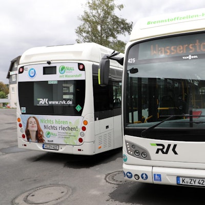 Mit Wasserstoff betriebene Busse sind klimaneutral im Straßenverkehr unterwegs.