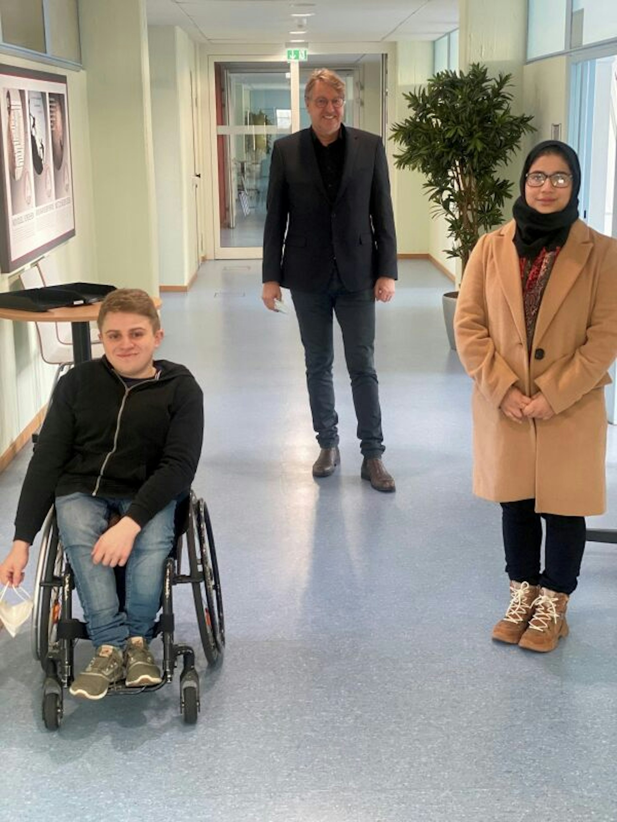 Mit dem 25-jährigen Phillip Fragkopoulos und der 19-jährigen Areeba Zahid gehören laut den Verantwortlichen zwei junge Menschen mit Handicap zu den fünf Azubis ihres Jahrgangs. Philip hat Glasknochen und sitzt seit seiner Geburt im Rollstuhl. Areeba hat eine starke Sehschwäche. Neben ihrer Brille ist sie bei der Bildschirmarbeit auf eine Vergrößerungs-Software angewiesen.