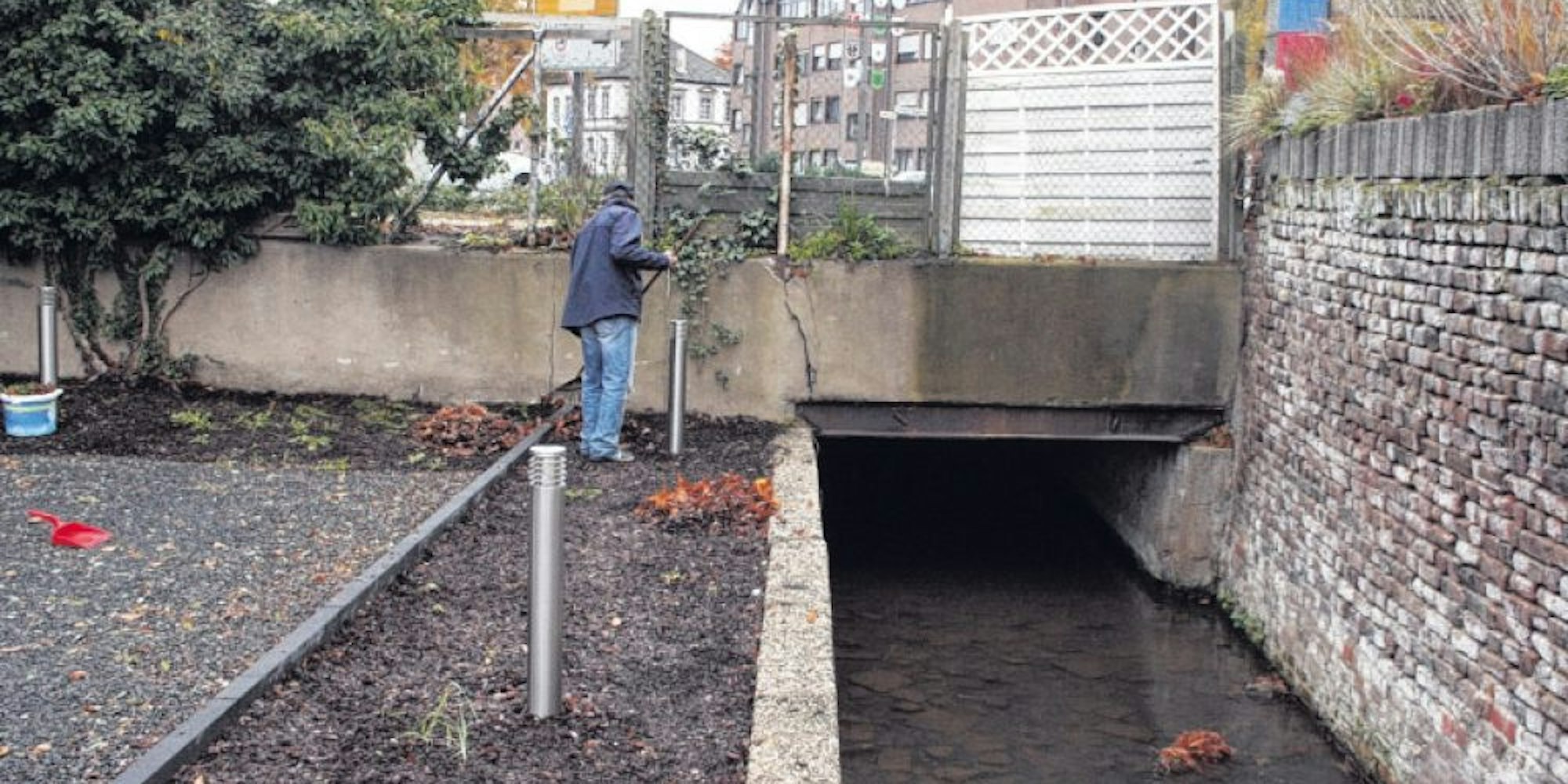 Ganz freiwillig geschieht das nicht. Das Bauwerk, das den Wasserlauf einschließt, ist baufällig. „Bei der regelmäßigen Kontrolle haben wir festgestellt, dass dringender Handlungsbedarf besteht, damit das Bauwerk nicht einstürzt“, sagt Fachdienstleiter Wilfried Naujock. Schon jetzt sei einer der Stellplätze auf dem Kölner Platz mit einem Blumenkübel gesperrt.