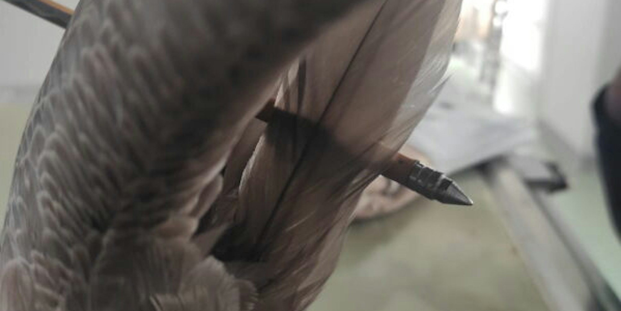 Nur leicht am Flügel verletzt wurde die Kanadagans von dem langen Bolzen.