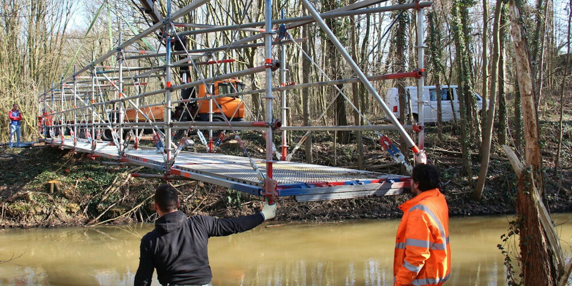 Druckleitung wird erneuertErftverband spannt Behelfsbrücke über Mühlenerft