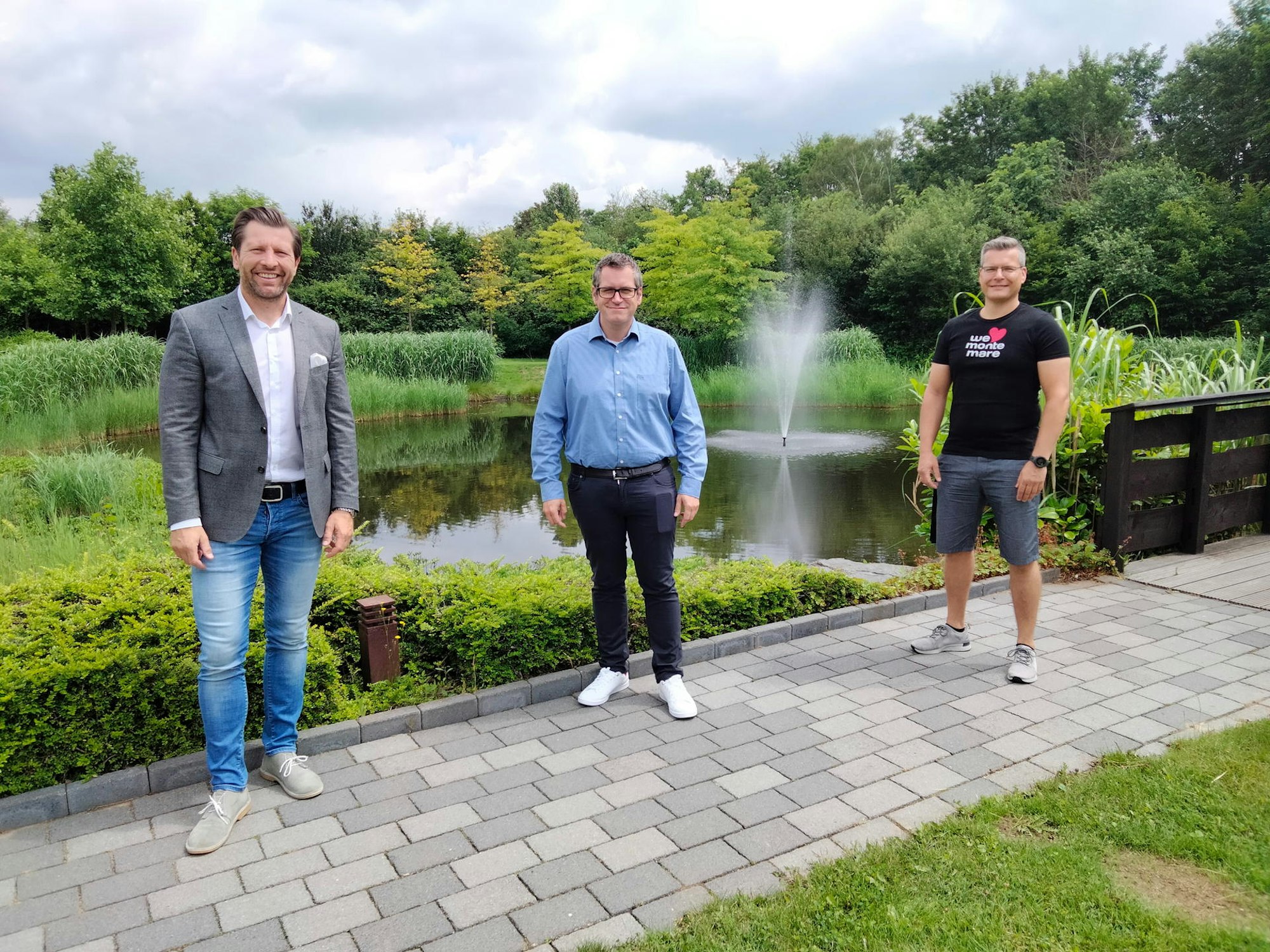 Betriebsleiter Philipp Hoffmann, Bürgermeister Sascha Solbach, Geschäftsführer Patrick Doll (v.l.) im Monte Mare.