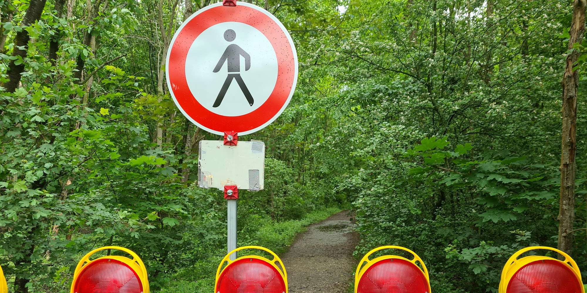 Zum Schutz von Wanderern und Radfahrern ist der Weg nun ab Höhe des Anglerheims in der Nähe der Kasterer Burgruine entlang der Mühlenerft bis zur Erftbrücke gesperrt.