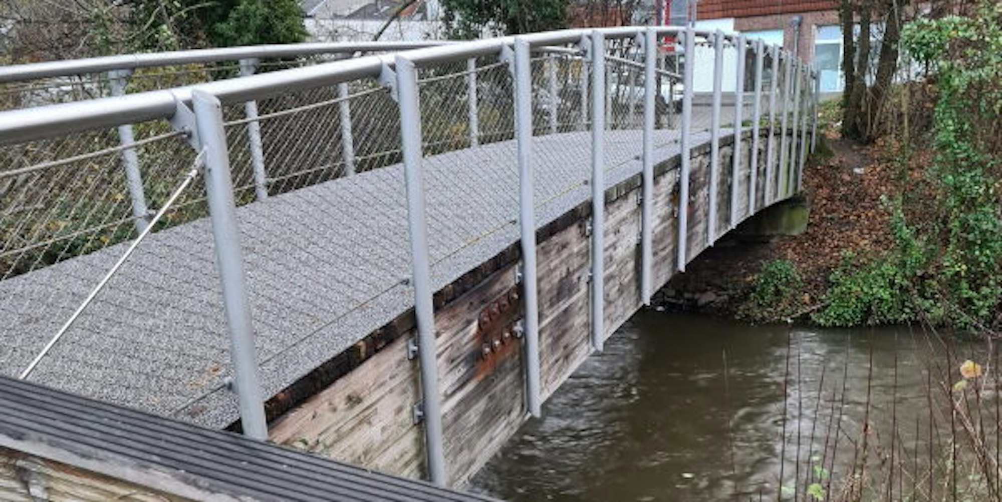 Die Holzbrücke an der Erftstraße hinüber in die Innenstadt soll durch eine Stahlkonstruktion ersetzt werden.